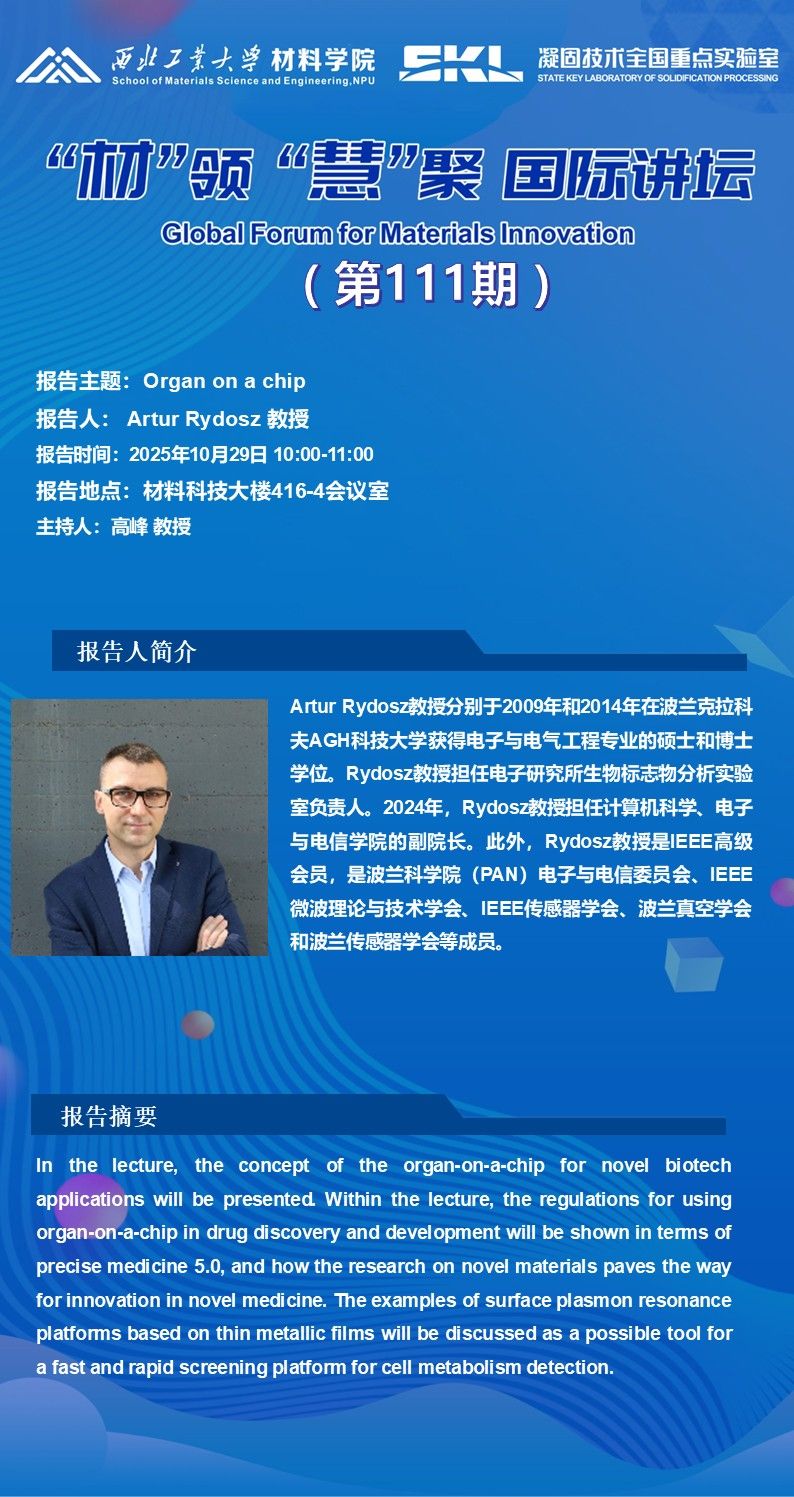 【学术报告】“材”领“慧”聚国际讲坛:Organ-on-a-chip