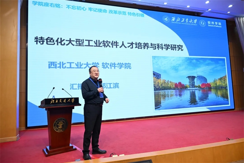 我校软件学院院长郑江滨教授受邀在大会上作《特色化大型工业软件人才培养与科学研究》主题报告。系统阐述了学院以“总师育人文化”为引领,秉承数理知识为基、软工课程为本、工业软件技术贯穿为链、复合型创新能力训练为要的育人理念、构建“软中有工、‘软’‘工’融合”的双融合课程内容和课程体系,分享了校企深度融合共赢的特色化人才培养和卡脖子技术攻关科研合作的协同育人新模式,提出将“软件×AI+X交叉领域”作为AI时代领域软件生态构建的新方向,以及人才培养的新要求。在科技创新方面,学院以突破大型工业研发设计类和MBSE类软件“卡脖子”技术为己任,研发的高能束3D CAM软件成为示范性软件学院联盟发布的十大软件之一,获得了广泛应用,得到了央视报道。