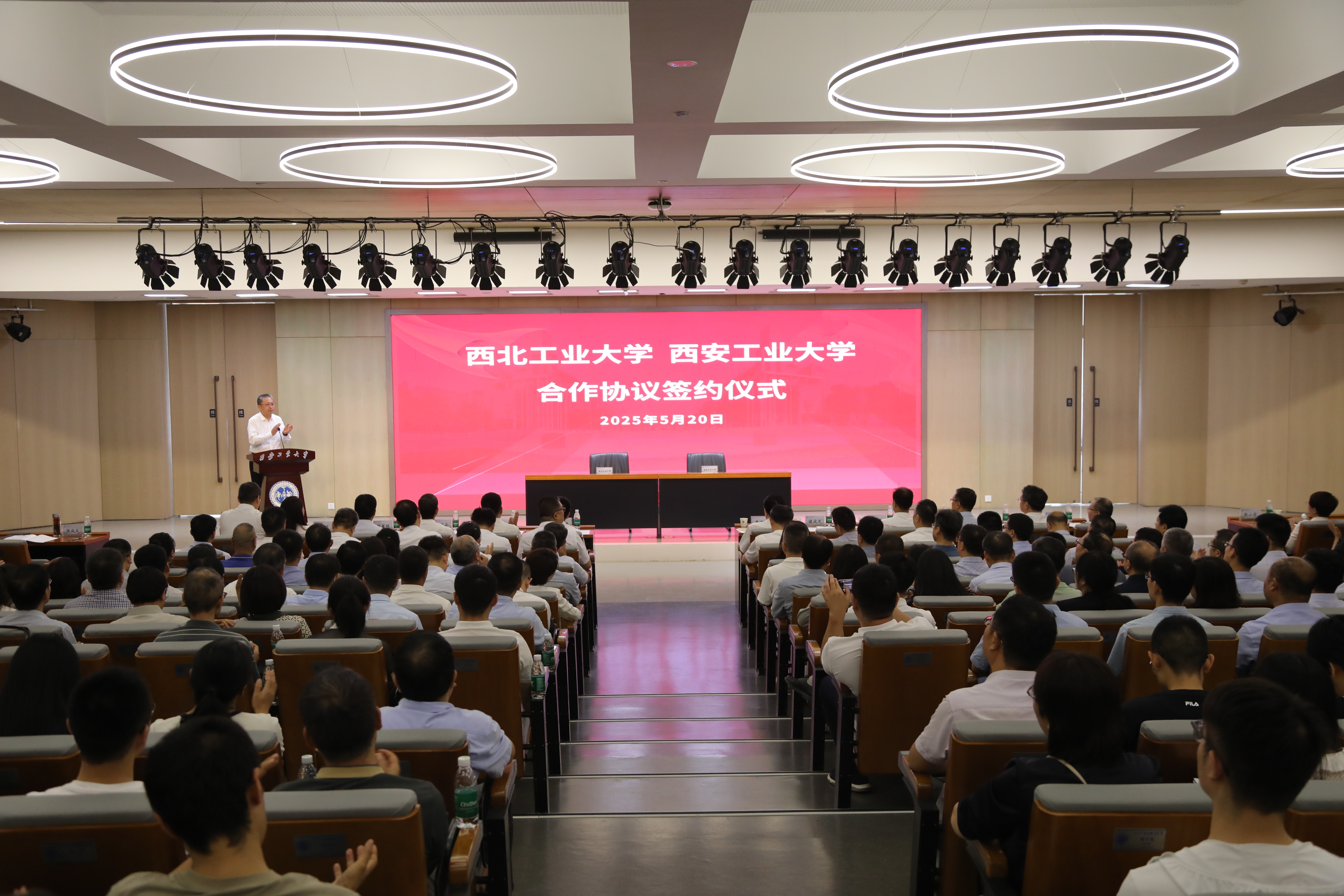 5月20日上午,我校党委书记李言荣,副校长王伶一行赴西安工业大学参加两校合作框架协议签约仪式。陕西省教育厅副厅长何玉麒,西安工业大学全体校领导、学校中层干部和师生代表300余人参加签约仪式。西安工业大学党委书记侯成义主持仪式。