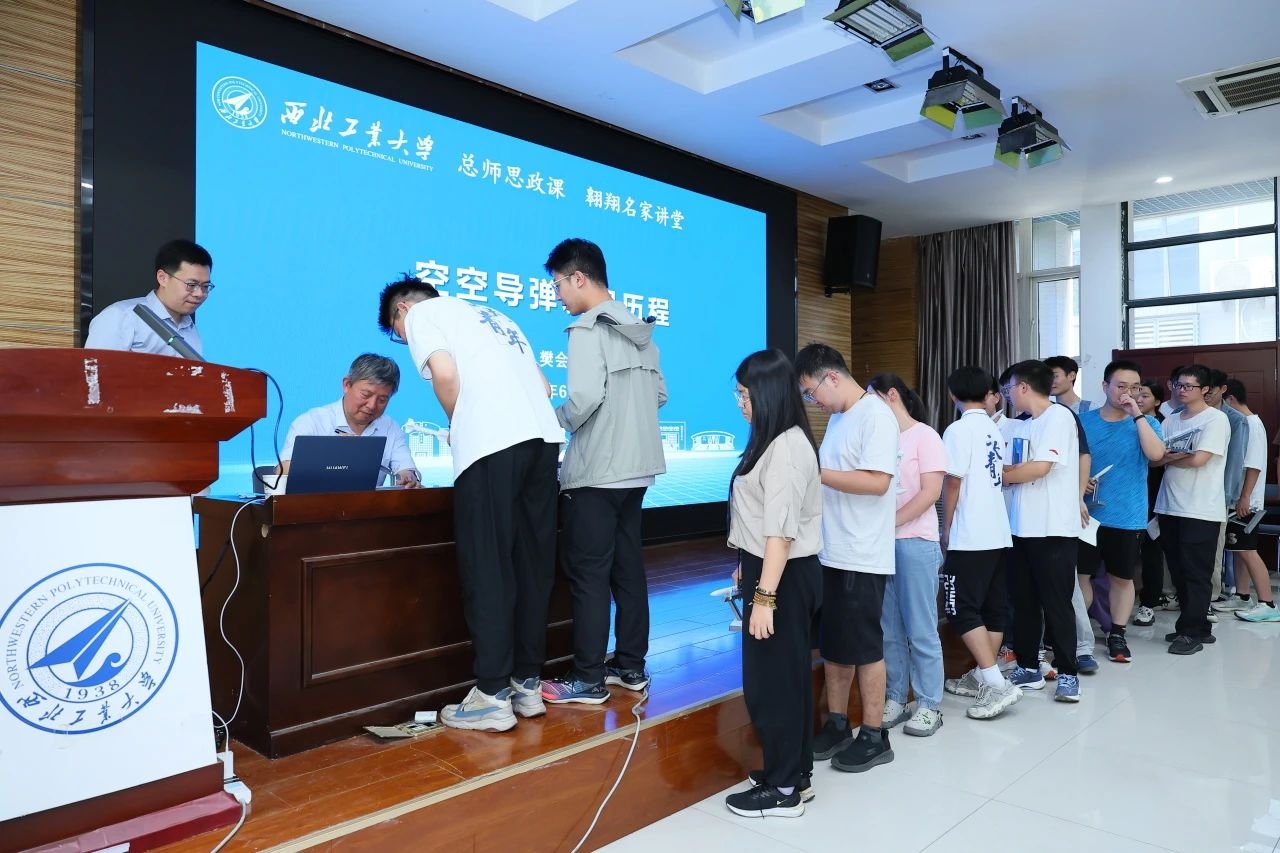 分享个人成长经历时,樊会涛深情回顾了在西工大的求学岁月和投身空空导弹事业的初心。他表示在西工大求学期间打下的扎实专业基础和锤炼的严谨作风,为他日后成长为我国空空导弹专家奠定了坚实基础。樊会涛动情讲述了曾带领团队克服重重困难,最终创造我国空空导弹多项新纪录的难忘经历,特别强调了永不放弃的拼搏精神的关键支撑作用。最后,他结合自身从参与研发到担任型号总设计师的经历,勉励青年学子胸怀家国,将个人理想融入国家需求,勇于探索创新。基于多年研制经验,他寄语学子在科研道路上需具备扎实专业基础、系统工程思维,注重多学科知识融合,坚持严谨求实的科学态度,努力成为强国建设的栋梁之才。