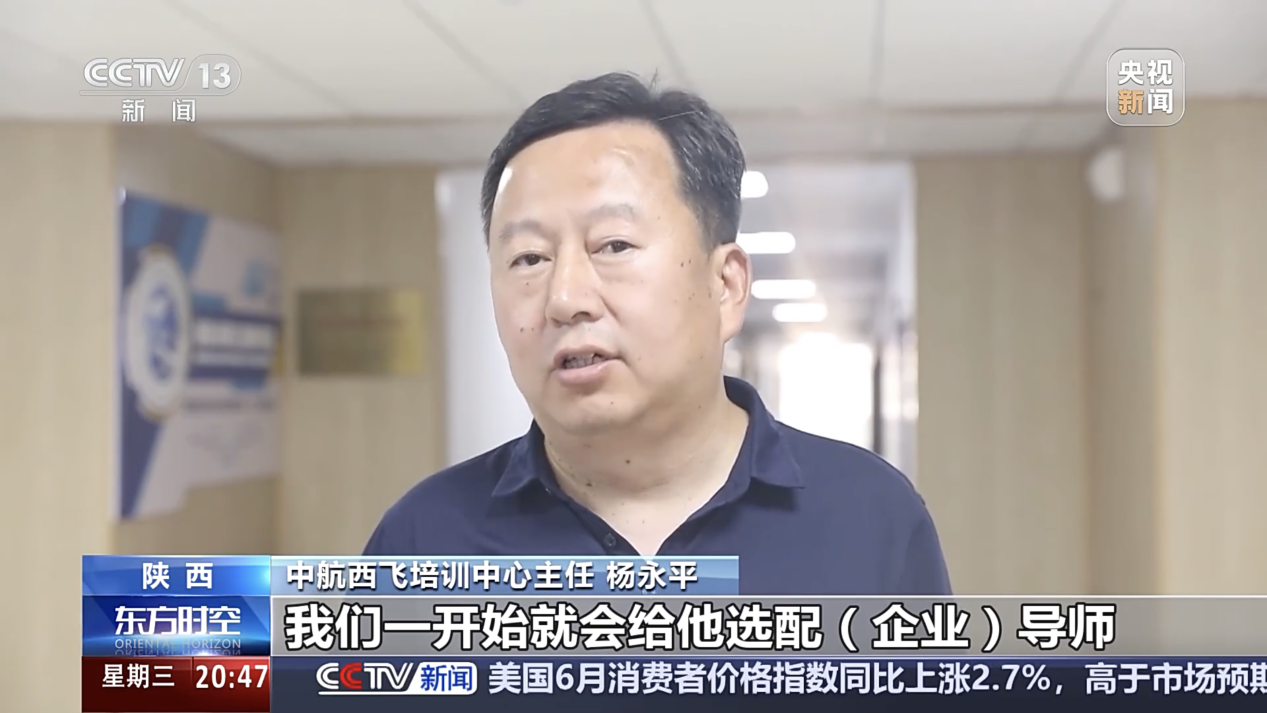 中航西飞培训中心主任杨永平:我们一开始就会给他选配企业导师,和我们的科研项目相结合,让他们(学生)担任实职,实实在在去做项目,出成果。