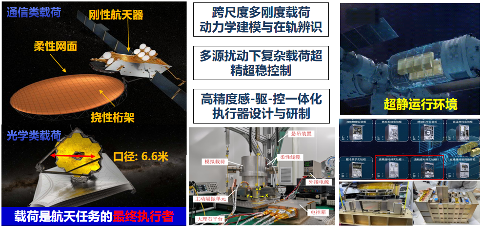 项目介绍:该成果面向高分辨率遥感、高精度空间实验、高增益卫星通信等重要航天器载荷的高精度指向和高稳定控制这一迫切需求,在载人航天、国家863计划等支持下,创新提出“动静隔离、以柔补刚”新方法,形成了由动力学通用新模型、协同控制新技术和精细调控新装置构成的航天器载荷精稳控制新体系:构建了多场耦合下航天器载荷界面连接动力学表征、传递和机电性能反演模型,发明了多刚度载荷动态特性原位识别技术;揭示了载荷动力学模型中跨刚度部组件间非线性耦合机理,发明了多源多路扰动下载荷指向与稳定度协同控制;发明了多自由度指向/稳定一体化精细调控装置。成果应用于我国科学、遥感、通信等不同种类航天器载荷,为我国航天事业发展提供了重要技术支撑。