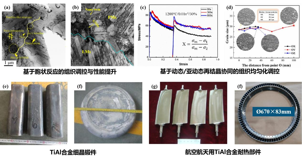 项目介绍:该成果针对航空航天重大装备对轻质高温TiAl合金的迫切需求,发明了基于胞状反应的高强高塑组织调控与低温热加工、基于动态/亚动态再结晶的细晶锻造、片层取向强韧化等关键技术,解决了高温TiAl合金强塑性匹配差、成形温度高、锻造易开裂与组织不均匀等制约其工程应用的瓶颈难题,研制的TiAl合金锻件、板材以及压气机内环、进口导流叶片、零级压气机叶片、四级高压压气机叶片等关键耐热部件在航空航天重要型号中获得应用,为新型航空发动机、高马赫飞行器等国家重大型号的研制提供了支撑。