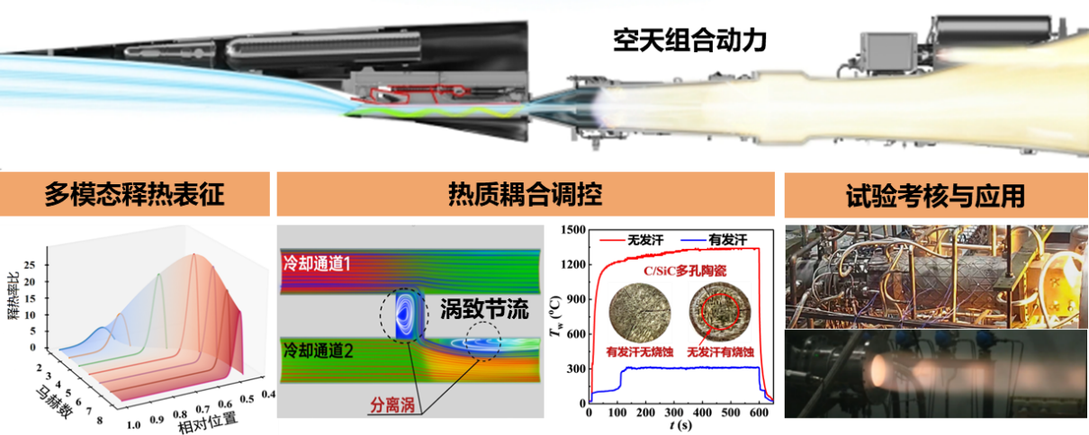项目介绍:该成果针对空天组合动力长时间耐高温热防护技术瓶颈,围绕受限空间内动态热流边界与传热过程耦合机制及应用开展深入研究,构建了受限空间内极端复杂燃烧环境热流高解析度表征模型,揭示了强时空非均匀热边界下超临界碳氢燃料热沉释放调控机理,阐明了多孔介质内非平衡相变传热及其与热源边界的耦合机制,形成了宽域组合发动机燃烧-冷却耦合的复合冷却设计理论与方法,完成了发动机工作条件下的长时间热考核和多次飞行验证,取得了一系列具有重要科学意义和学术影响的原创性成果,为我国空天飞行组合动力研制提供了重要支撑。