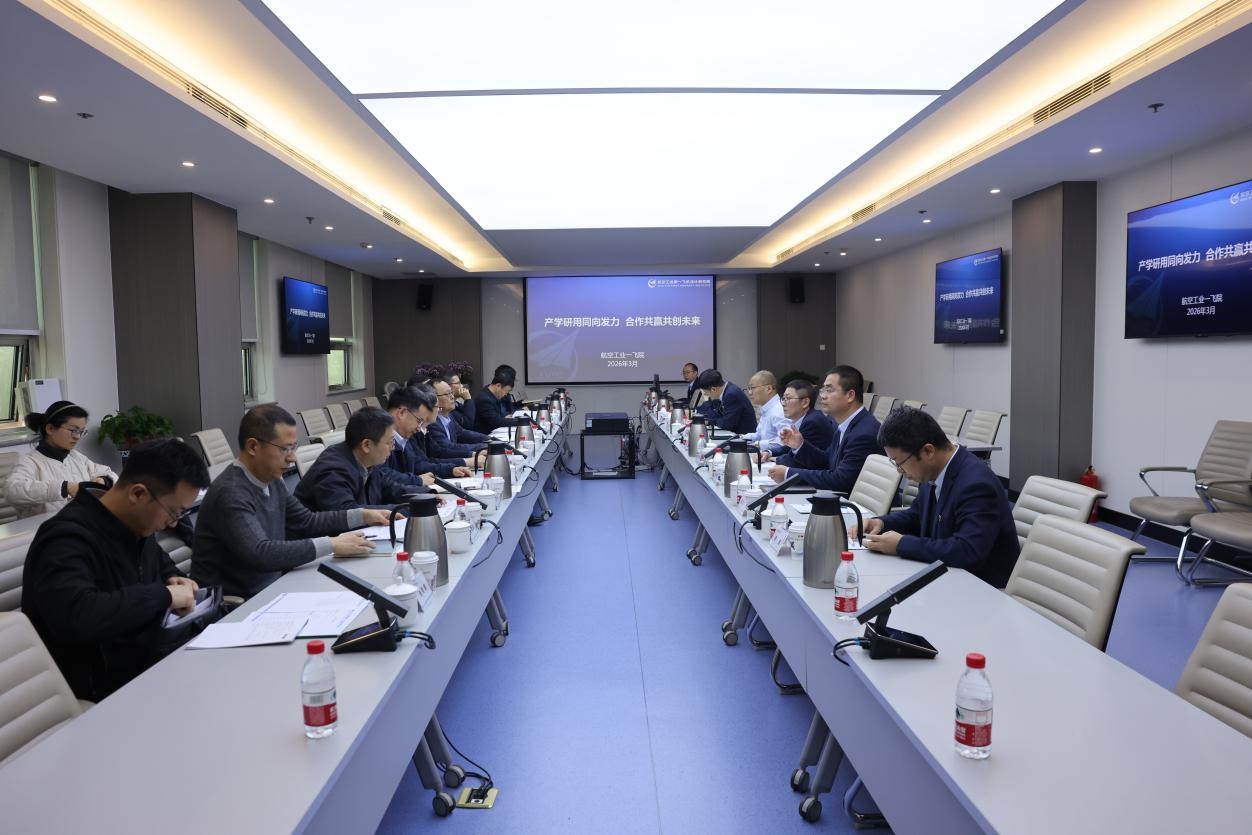 座谈会上,耿延升对宋保维一行来院调研推进合作表示欢迎。他表示,西工大为一飞院项目研制提供了关键智力支持,是一飞院重要的人才输入基地,双方在师资共享、协同育人及就业指导等方面已形成良好局面。一飞院将继续依托重大工程场景牵引与系统工程优势,与西工大扎实的基础研究能力相结合,聚焦亟待突破的众多“1”的关键核心技术难题,深化合作,集智攻关。希望双方紧扣国家重大战略需求,推进“人才链-技术链-装备建设链”深入融合,为服务国家战略发展贡献力量。