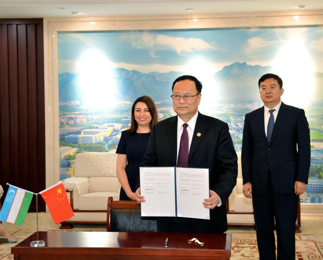 宋保维代表学校对访问来宾表示欢迎并简要介绍了学校情况。他指出,长期以来,西工大与包括乌兹别克斯坦在内的中亚五国交流合作水平不断提升,合作领域持续拓展深化,为推动共建“一带一路”倡议贡献了积极力量。近年来,学校持续接收乌兹别克斯坦留学生,并鼓励教师同乌方开展科研领域合作,为此次合作备忘录的签署奠定了友好的基础。恰逢中国—中亚峰会,此次签署将进一步深化双方合作,并为两国科教发展提供有力支撑。希望西工大与乌兹别克斯坦充分发挥各自的优势,在学生联合培养、教师交流、科学研究等方面加强合作,不断拓展合作的深度和广度。
