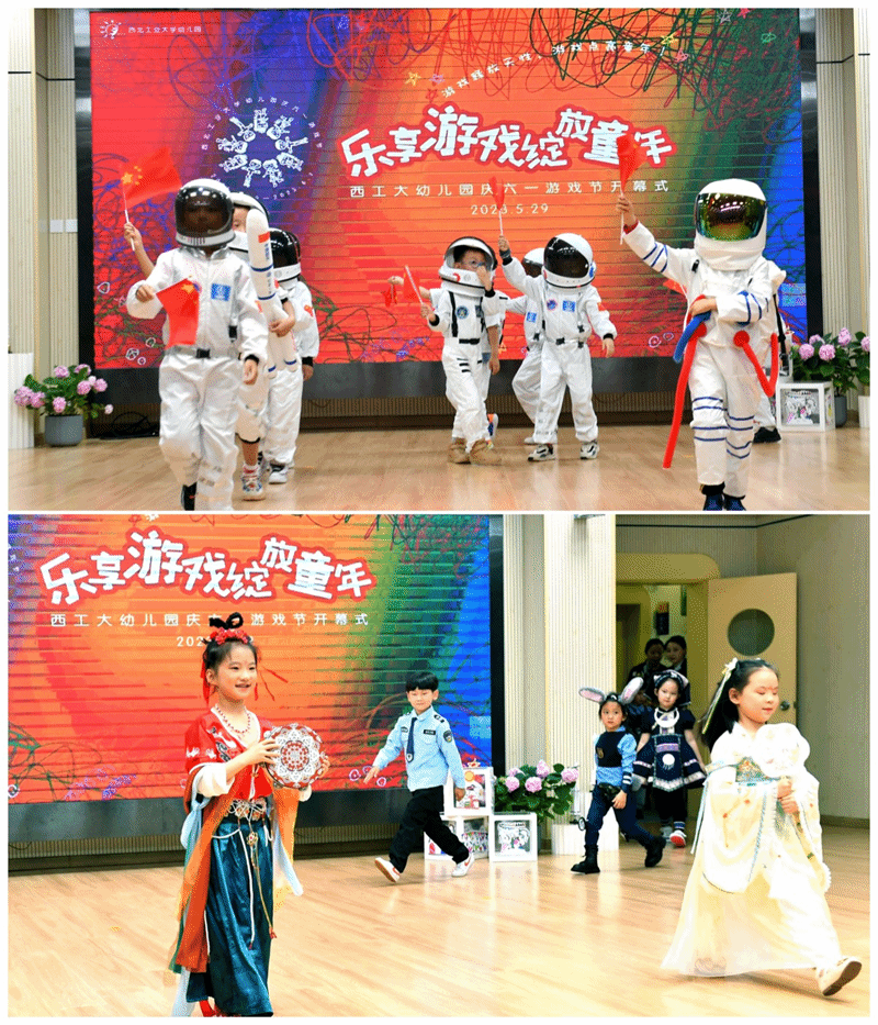 在全场师生的见证下,西工大幼儿园2023年“乐享游戏,绽放童年”庆“六一”游戏节正式开幕!