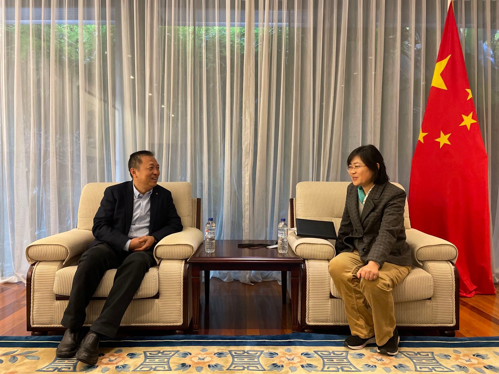6月15日上午,代表团专程到中国驻悉尼总领事馆进行了拜访,侯成义与中国驻悉尼总领事馆教育组参赞林晓青等进行了会谈。侯成义介绍了学校近年来的发展和取得的成绩,并对悉尼总领馆在学校发展中提供的长期支持表示感谢。林晓青对代表团的来访表示热烈欢迎,并就学校在悉尼开展的交流活动进行了指导。