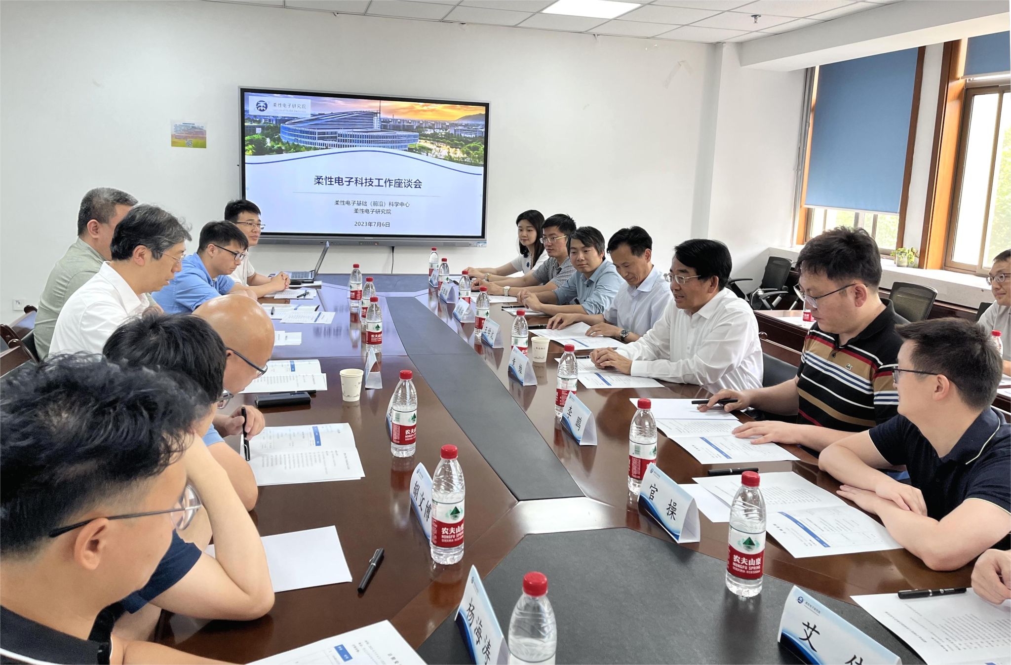 王学文对研究院的情况进行简要介绍。8位与会青年教师就各自在柔性电子领域的最新研究进展和成果等进行了报告和交流。
