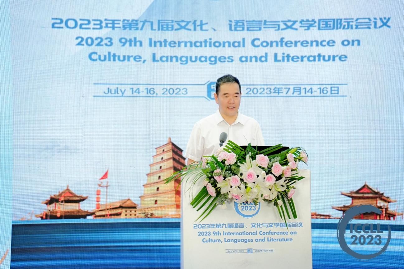西工大新闻网7月20日电(王晓丹)为促进外国语言文学领域的学术交流与合作共享,提升学校文科国际学术声誉及国际影响力,打造文化、语言与文学研究国际学术共同体,7月15日至16日,由西北工业大学主办、西北工业大学外国语学院承办的“2023年第九届文化、语言与文学国际会议”(The 9th International Conference on Culture, Languages and Literature, orICCLL 2023)在古城西安召开。20余位国内外知名专家和100余名青年学者参加了此次盛会,共同交流了文化、语言与文学领域的前沿学术观点和最新研究成果。我校党委副书记陈建有、国际合作处副处长向丹、外国语学院党委书记王高祖、美国密歇根大峡谷州立大学(Grand Valley State University)校长助理Sean Lancaster、英国坎特伯雷大学(Canterbury Christ Church University)语言中心主任Kevin Balchin、南京航空航天大学外国语学院副院长徐以中、美国温斯顿萨勒姆州立大学Wen Xiong,以及来自英国朴茨茅斯大学、澳大利亚墨尔本大学、荷兰方提斯大学、巴基斯坦国立科技大学、阿联酋扎耶德大学、香港理工大学、澳门科技大学、上海外国语大学、中央民族大学、南开大学、大连海事大学、西安交通大学、陕西师范大学等40余所国(境)内外知名高校的专家学者出席会议。大会开幕式由外国语学院副院长张奕教授主持。