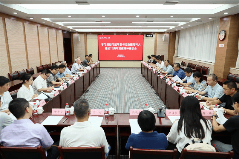 西工大新闻网9月8日电(文字 杜宇 王翠萍 摄影 周军平)为深入学习贯彻习近平总书记致国防科技大学校庆贺信精神,纪念哈军工创立70周年,传承和发扬哈军工光荣传统,团结汇聚全校师生和广大校友砥砺奋进,9月6日,西北工业大学召开学习贯彻习近平总书记致国防科技大学建校70周年贺信精神座谈会。校长宋保维,在校哈军工师生代表,国防科大校友代表,相关学院及职能部门代表,学生代表等30余人参加了座谈会。会议由副校长侯成义主持。