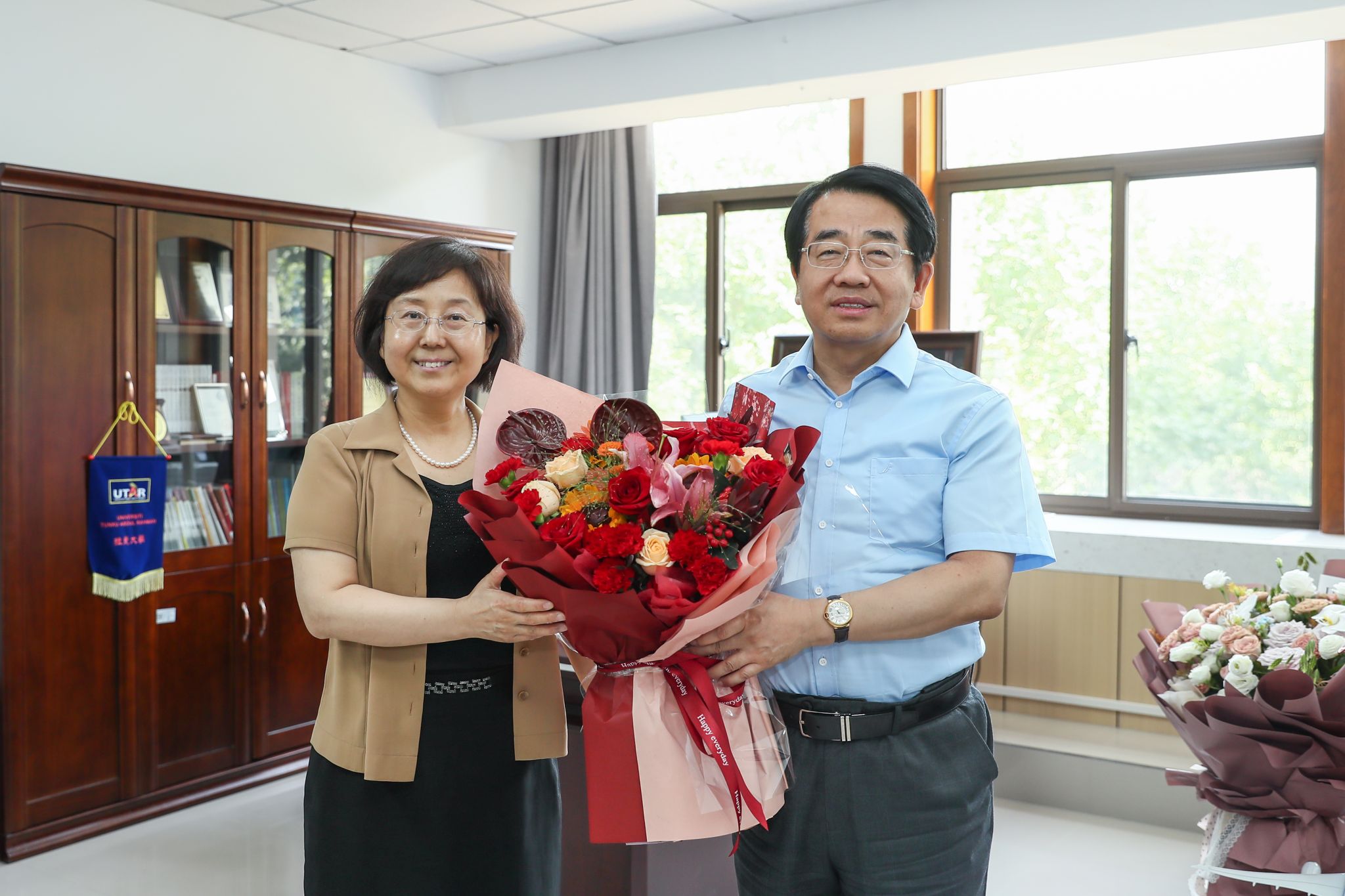 慰问团还走访了微积分教学团队、大学英语教学部、习近平新时代中国特色社会主义思想概论教研室,看望了基础课教师和思政课教师代表,感谢他们在一线教学工作中的辛勤付出,向他们赠送了鲜花,表达了诚挚的祝福。