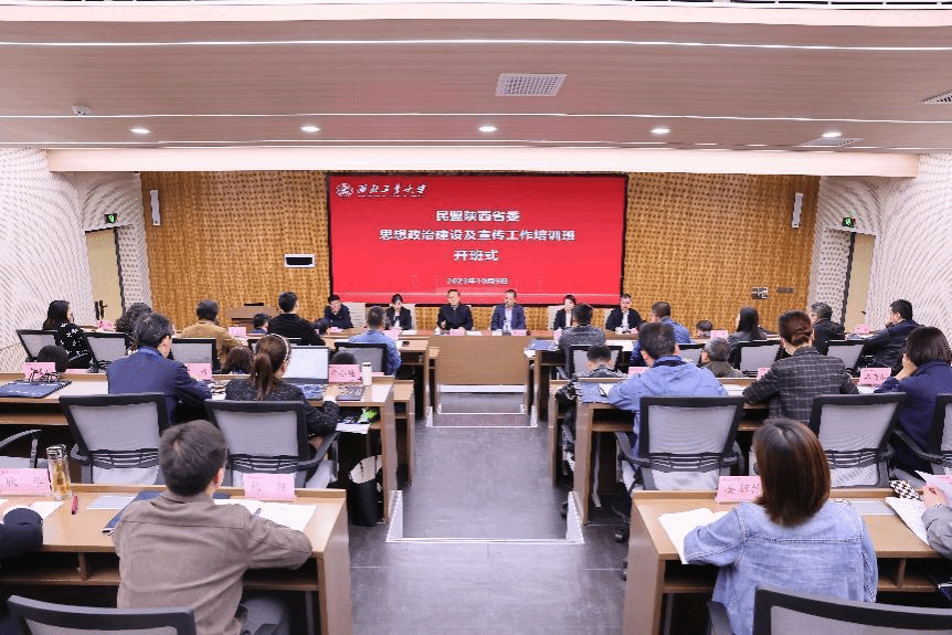 西工大新闻网10月10日电(文字高菁 王翠萍 摄影卢迪)10月9日上午,由民盟陕西省委员会主办,西北工业大学继续教育学院承办的“民盟陕西省委思想政治建设及宣传工作培训班”在我校友谊校区顺利开班。全国政协常委、陕西省政协副主席、民盟陕西省委主委范九伦,西北工业大学党委常委、副校长兼统战部部长侯成义,党委统战部常务副部长乔彩燕,继续教育学院党总支书记杨志坚,陕西省政协常委、民盟陕西省副主委、民盟西北工业大学委员会主委孙武斌出席了开班仪式。仪式由陕西省人大常委会委员、民盟陕西省委专职副主委张红主持。