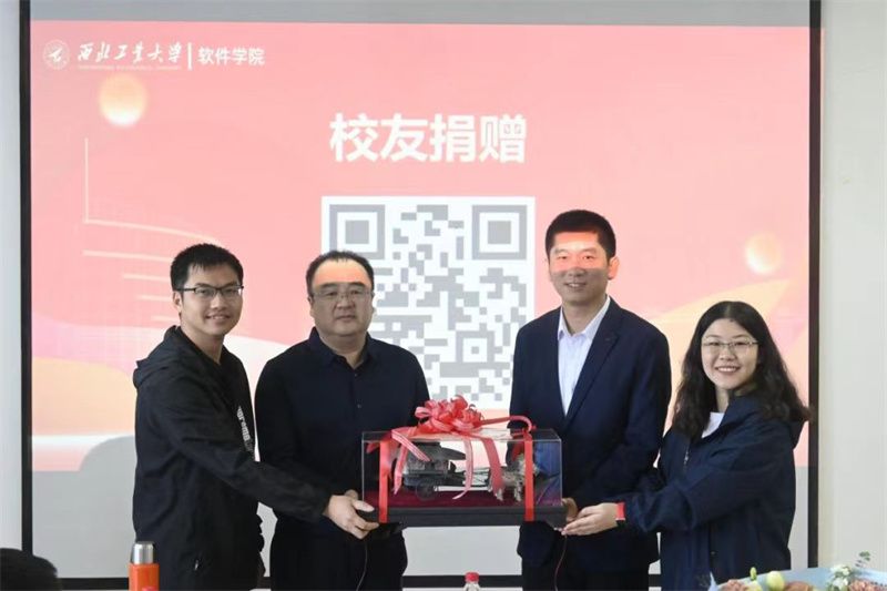 2009级校友向学院捐赠了“秦陵铜马车”仿真文物模型,寓意在八百里秦川之上,软件学院必将继续行稳致远。