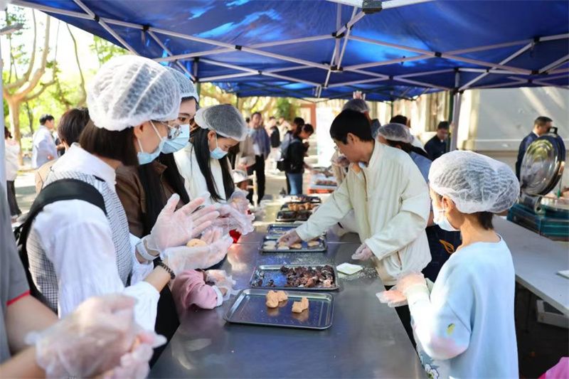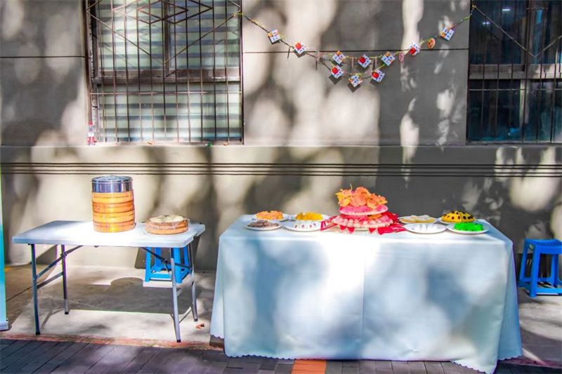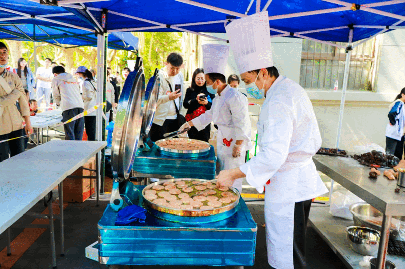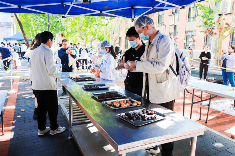 来到活动现场的参与者们不仅玩的兴高采烈,还吃的喜笑颜开,食堂的大厨们正在炸着美味的柿饼,金黄的煎锅里,黄澄澄的柿饼散发着甜甜的香味,吸引着人们驻足品尝,而参与者们吃到自己亲手做的柿饼时仿佛更加美味了。由后勤产业集团饮食服务中心制作的花馍因其精美独特的造型吸引着大家的眼球,而其细腻的口感和醇厚的味道沁人心脾,引得大伙啧啧称奇。