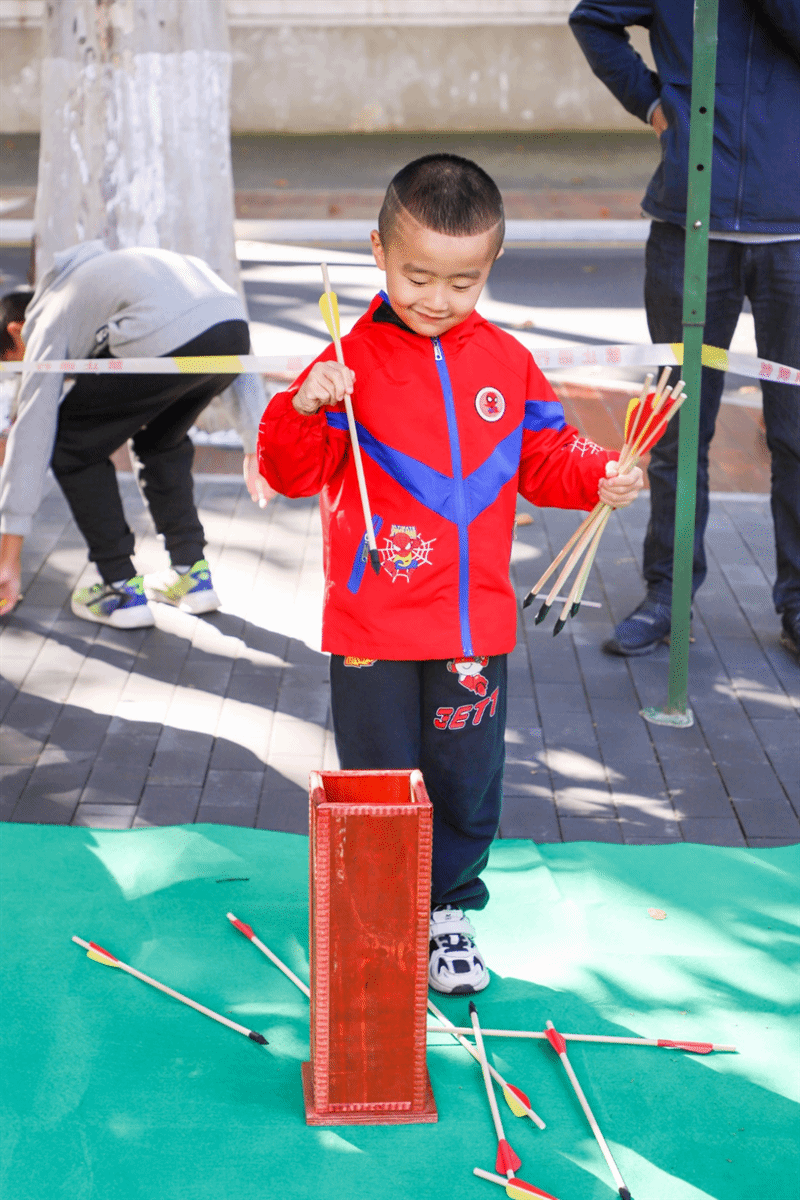 “哇,中了!”循着连连叫好声望去,原来是在投壶,投壶胜出者可以亲手参与制作柿子饼,引得大伙争相参与,只见参与者正手持木签,跃跃欲试,随着木签在空中划过优美的轨迹精准落入壶中,现场欢呼一片。