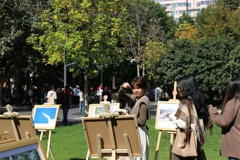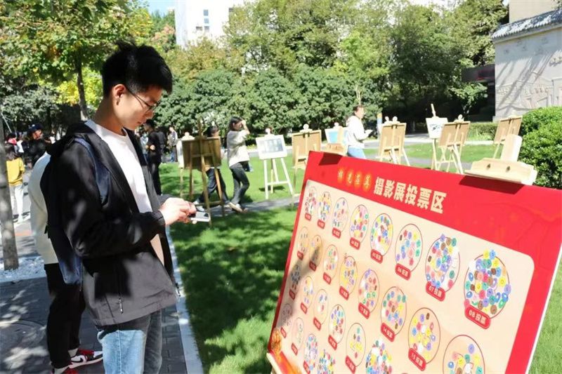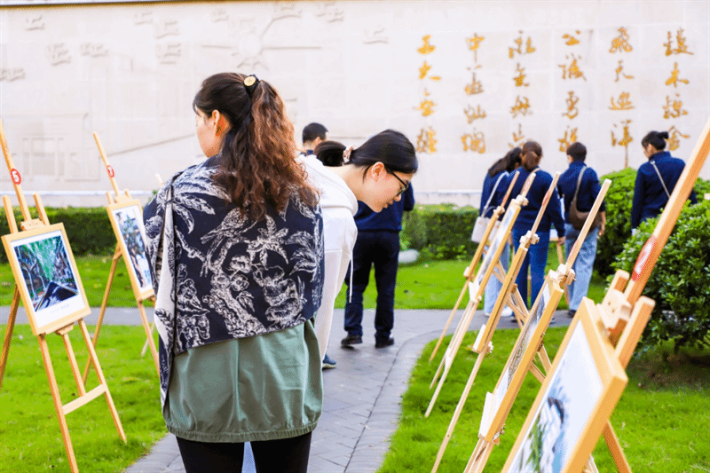 校歌墙边,一幅幅引人注目的照片整齐排列,是同学们用相机捕捉的美丽瞬间,更是工大学子们为母校书写的情书,这里便是第一届“柿光荏苒”