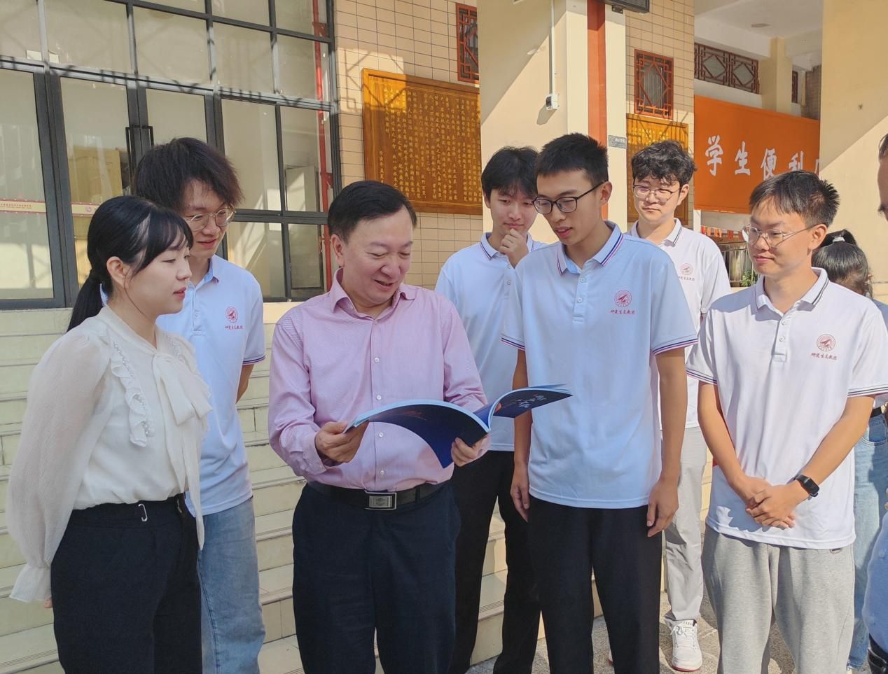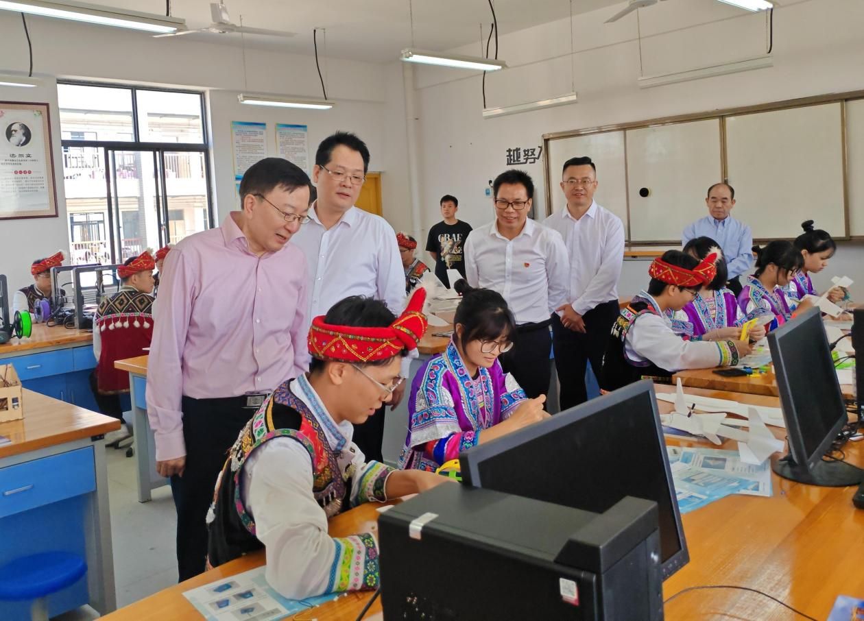 会前,李言荣一行深入融水县民族高中考察教育帮扶情况,详细了解了我校近年来在教师跟岗培训、示范授课、支持创客中心建设等方面取得的成果。