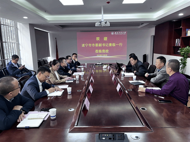 会见中,景临介绍了遂宁市近年来的发展建设情况,并对西工大在遂宁开展的产学研转化项目做了重点介绍。他表示,近年来西工大科技成果转化成效显著,希望学校在高端装备、新能源电池、电子信息产业等领域与遂宁市加强交流与合作。