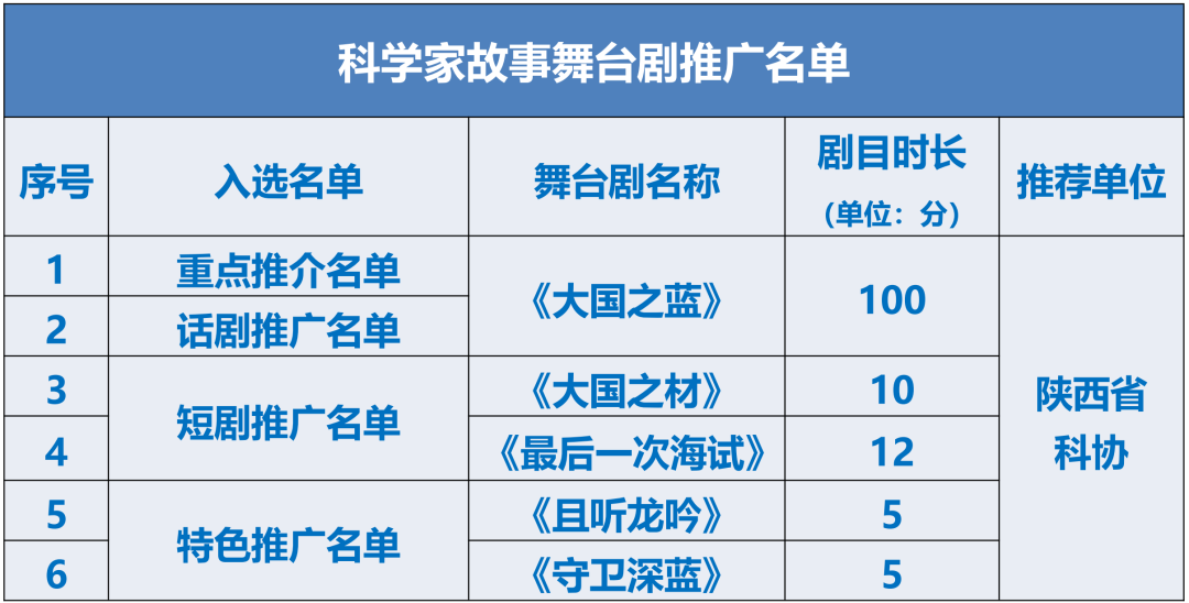 近日,由中国科协、教育部、共青团中央、中国科学院、中国工程院、中国文联共同主办的全国“科学家故事舞台剧推广行动”首批名单发布,我校原创科研工作者群像剧《大国之蓝》入选全国十大重点推介名单和话剧推广名单,原创短剧《大国之材》《最后一次海试》入选短剧推广名单,原创朗诵《且听龙吟》《守卫深蓝》入选特色推广名单,五部作品获选,是本次活动中入选作品最多的单位,展现出我校美育工作的显著成效。