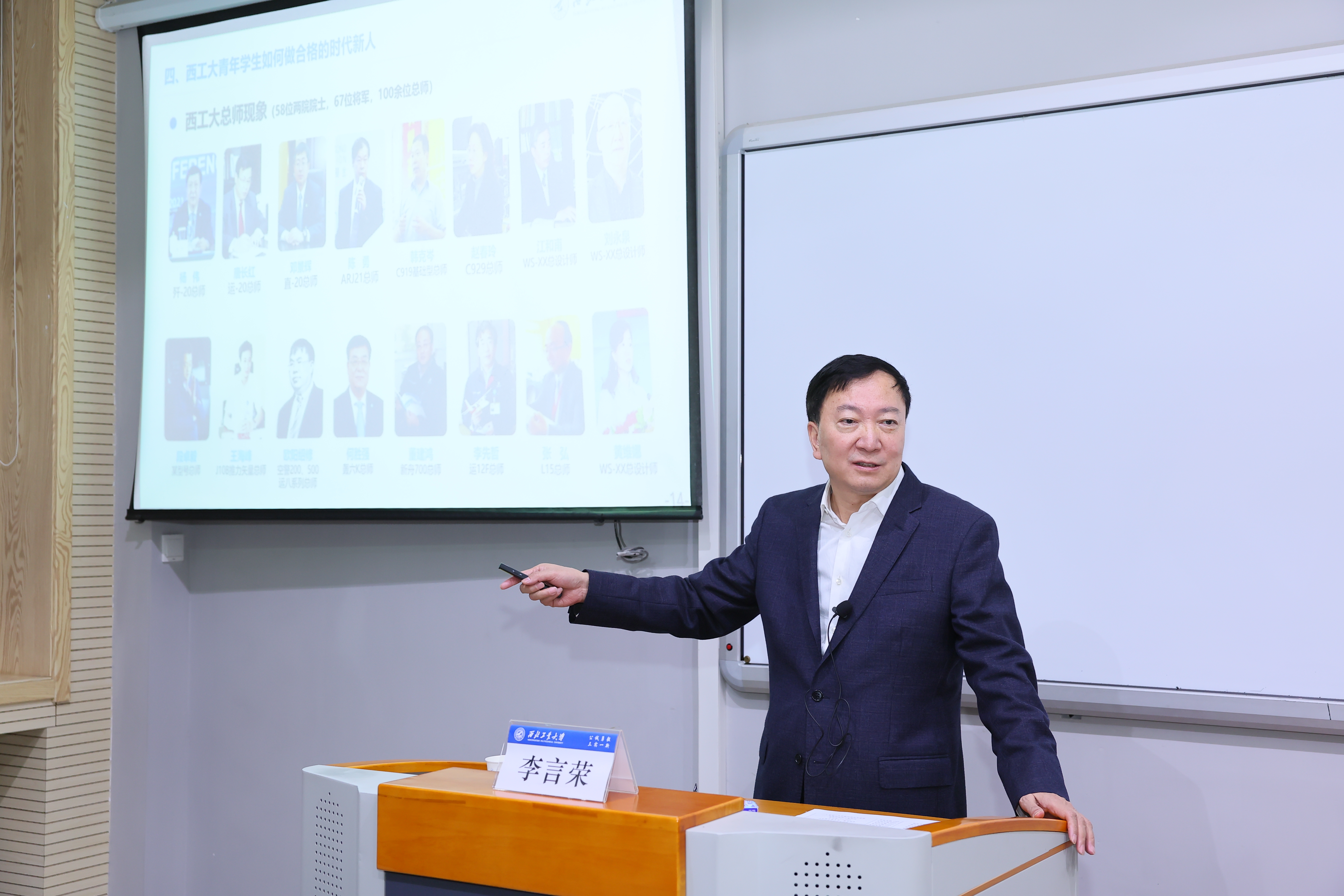 关于西工大青年学生如何做合格的时代新人,李言荣说,长期以来,西工大形成了科研型号系统集成能力强、日用而不觉的“总师育人文化”深入人心、工程技术转移转化基础好的特色优势,大批西工大毕业生成为行业精英、国之栋梁,形成了特有的西工大总师现象。近期,学校在挖掘“总师现象”成因和内涵的基础上,凝练了“低调务实、兼收并蓄,厚积薄发、为国铸剑”的“总师型”人才特质,希望同学们秉承“公诚勇毅”校训,弘扬“三实一新”校风,在学校“总师育人文化”的滋养下,保持低调务实不张扬、扎根一线能担当的传统,努力做到专业精、系统强、重实践、能担当,既要努力成长为国防科技事业的“总师型”人才,又要在各行各业发光发热,努力成长为担当强国复兴重任的时代新人。