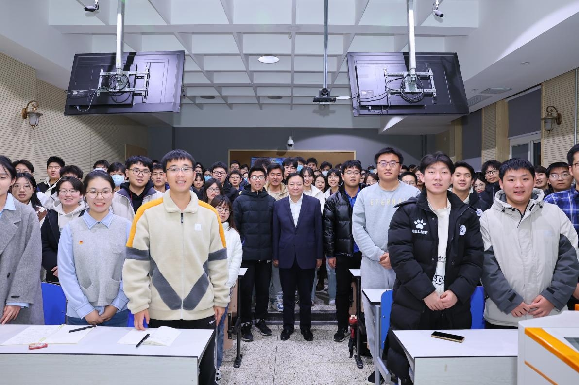 12月12日下午,我校党委书记李言荣在长安校区教学东楼为学生党员和干部讲授了题为《强国复兴与时代新人》的思政课。来自全校各培养单位学生干部代表、电子信息学院本科第三党支部及“三创三力”样板学生党支部学生党员代表、第十二期翼鲲班学生代表等120余人参加思政课。同时,这也是李言荣为所联系的电子信息学院学生党支部的一次党课。