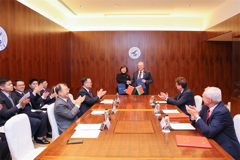 张艳宁、谢尔盖·安东诺维奇·奇日克代表双方签署《西北工业大学与白俄罗斯国家科学院合作谅解备忘录》。