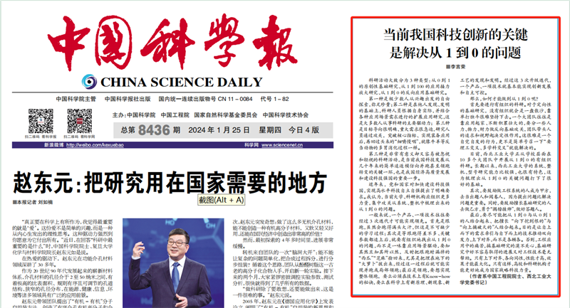 编者按:我校党委书记、中国工程院院士李言荣多次提出,从 1到 0 的科研活动,对当前国家推动实现科技自立自强非常关键,特别是对于西工大这种系统、整机、型号研究能力比较强的高校来说至关重要。2024 年 1 月 25 日,《中国科学报》头版刊登李言荣书记文章《当前我国科技创新的关键是解决从 1 到 0 的问题》。全文如下: