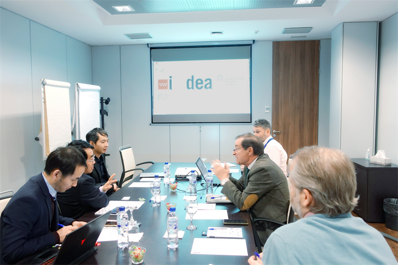 代表团访问了马德里高等研究院纳米科学研究所(IMDEA Nanociencia),与研究所所长Rodolfo Miranda教授和部门负责人Juan Cabanillas教授、Enrique Cánovas教授等进行了座谈。Cabanillas教授对黄维院士一行的到来表示热烈欢迎,盛赞黄维院士及其团队近年来所取得的突破性成果。双方在开展全面而深入的科研合作、人员交流和举办双边会议等方面达成了共识。