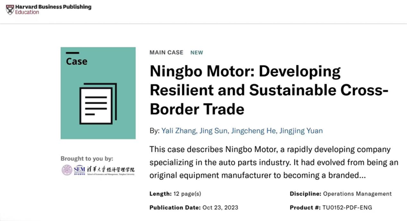 近日,西工大管理学院张亚莉教授团队和清华大学经济管理学院教师合作开发的英文教学案例《Ningbo Motor: Developing Resilient and Sustainable Cross-Border Trade》正式被哈佛大学商学院出版教学资源平台(即“哈佛案例库”)收录,并同步在清华大学经济管理学院中国工商管理案例库上线,这是我校首篇被哈佛案例库收录的案例。