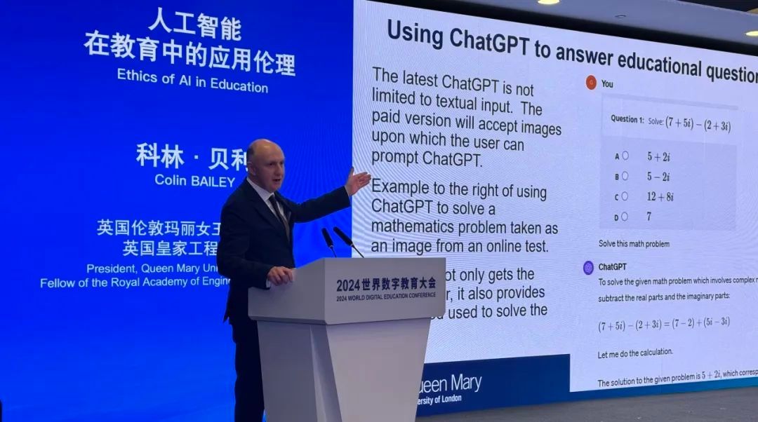 我校与伦敦玛丽女王大学合作创设西北工业大学伦敦玛丽女王大学工程学院(简称玛丽女王工程学院),作为教育部批准的西北地区首个非独立法人中外合作办学机构,是中英深入开展教育领域合作、深化人文交流的代表成果之一。学院一直致力于推动教育数字化和国际化,Colin Bailey受邀参加此次2024世界数字教育大会,详细介绍了中英合作办学的特色和优势,展示了数字教育领域的先进理念和实践成果,同时也间接提升了我校的知名度和影响力,将进一步推动我校与其它高等教育机构的合作与交流。
