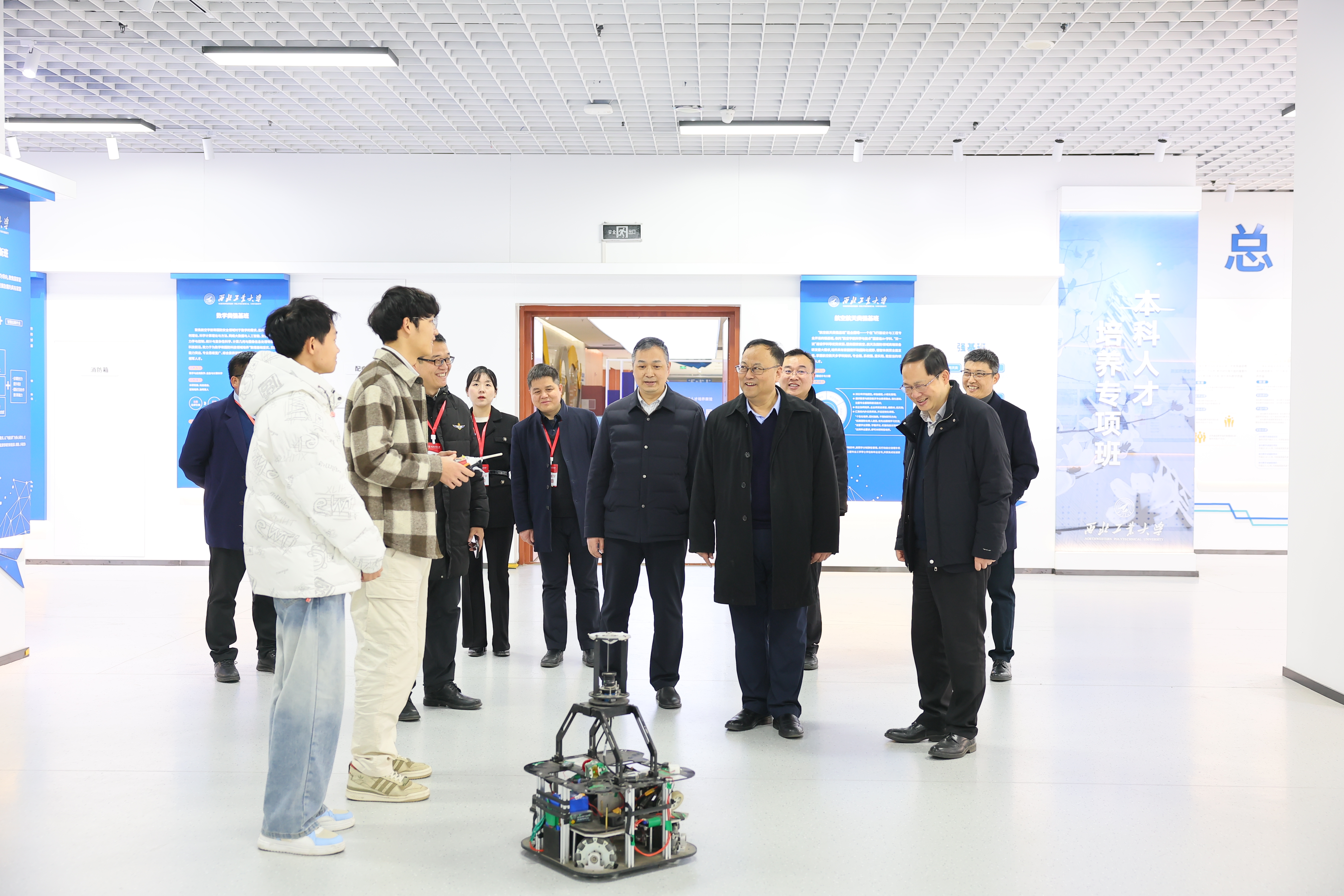 宋保维一行还调研指导了“总师型”人才培养展馆,观看了多个学生作品展演,肯定了“总师型”人才培养展馆的建设成果,强调要弘扬“总师育人文化”,更要讲好“总师育人文化”,将人才培养成果讲给广大学生家长听。