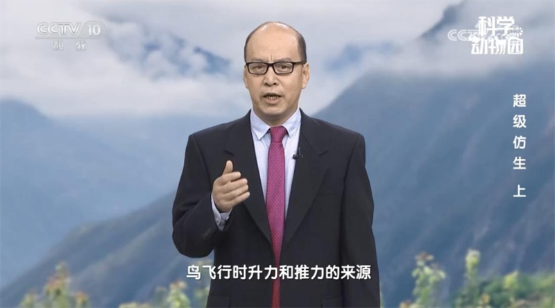 在3月2日播出的节目中,宋笔锋教授讲述了团队研制仿生扑翼无人机的过程。他首先以信鸽为例,介绍了信鸽的翼结构和运动形式,以蜂鸟和信天翁为对照,详细介绍了信鸽的臂翼、手翼适中的特征,并介绍了鸟类的基本飞行原理。
