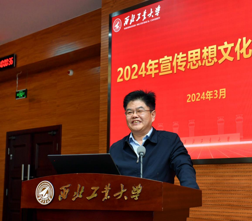 张富利从理论诠释、新闻宣传、文化建设、舆情及网络信息安全和意识形态等5个方面对学校宣传思想文化工作进行了多角度剖析,汇报了《中共西北工业大学委员会2024年宣传思想文化工作要点》重点任务及发展指标。