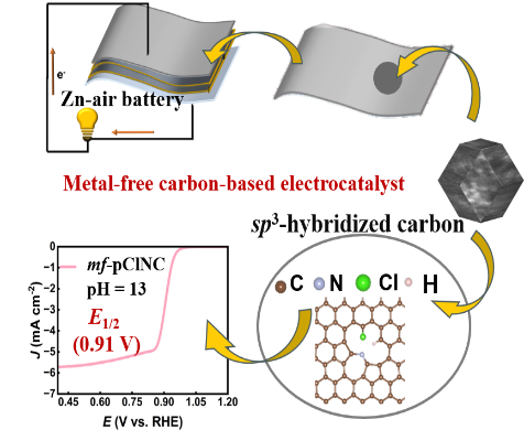 锌-空气电池(ZABs)的实际效率、放电功率和循环稳定性受到空气阴极氧反应缓慢动力学过程的限制,开发具有高效催化活性且廉价的阴极材料具有重大意义。无金属碳基电催化剂具有易获取、成本低、导电性好、化学稳定性好等优点。然而,不含金属的碳基电催化剂的本征活性差强人意,尤其是未改性的碳材料,对ORR底物和中间体的吸附和活化呈惰性,阻碍了无金属电催化剂作为锌-空气电池负阴极材料的发展。目前,无金属碳基电催化剂活性的提升有了质的飞跃,但其仍难以与过渡金属碳基电催化剂相媲美。因此,需要探索更有效和更简单的策略来增强无金属碳基电催化剂的性能。