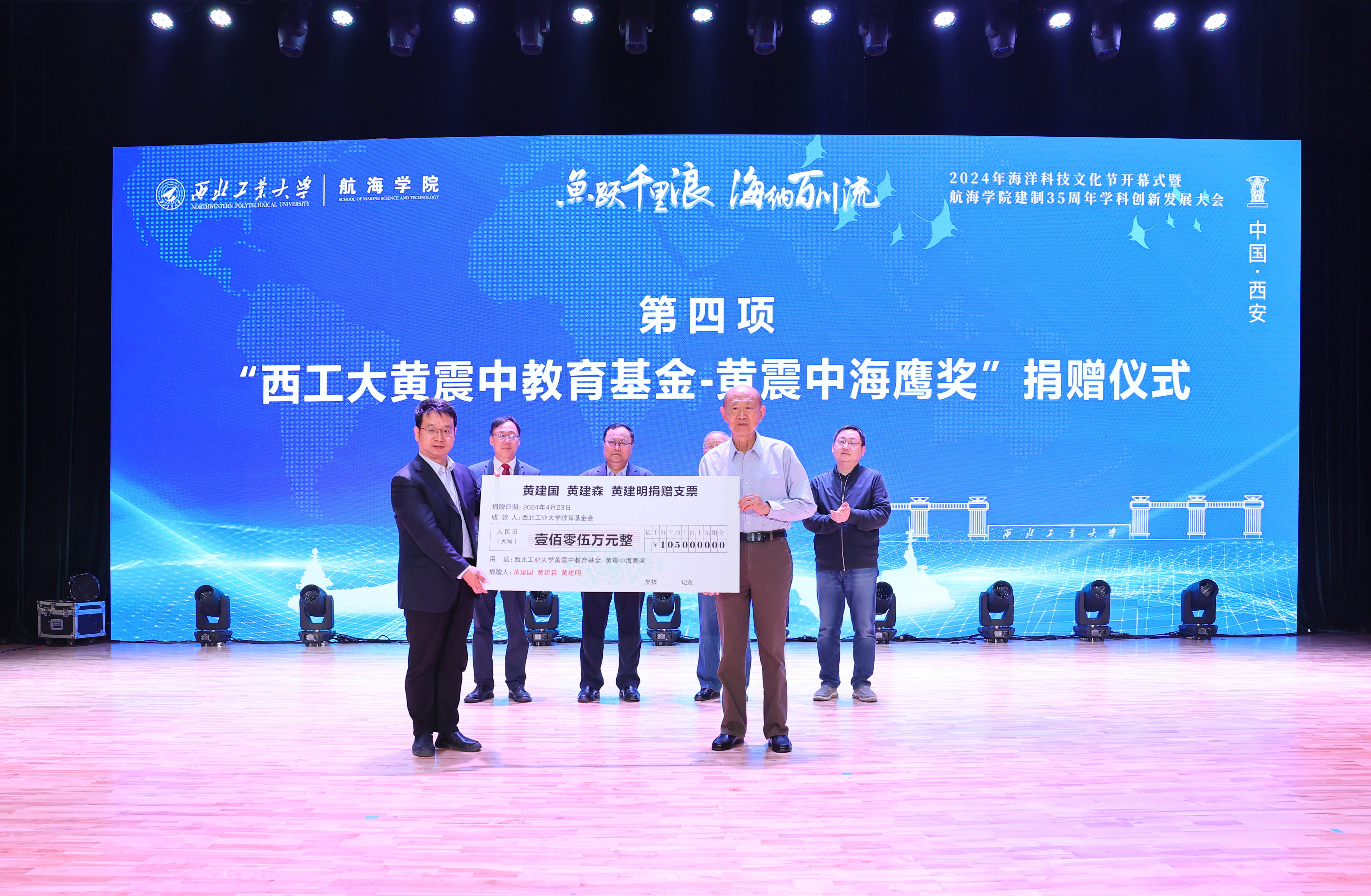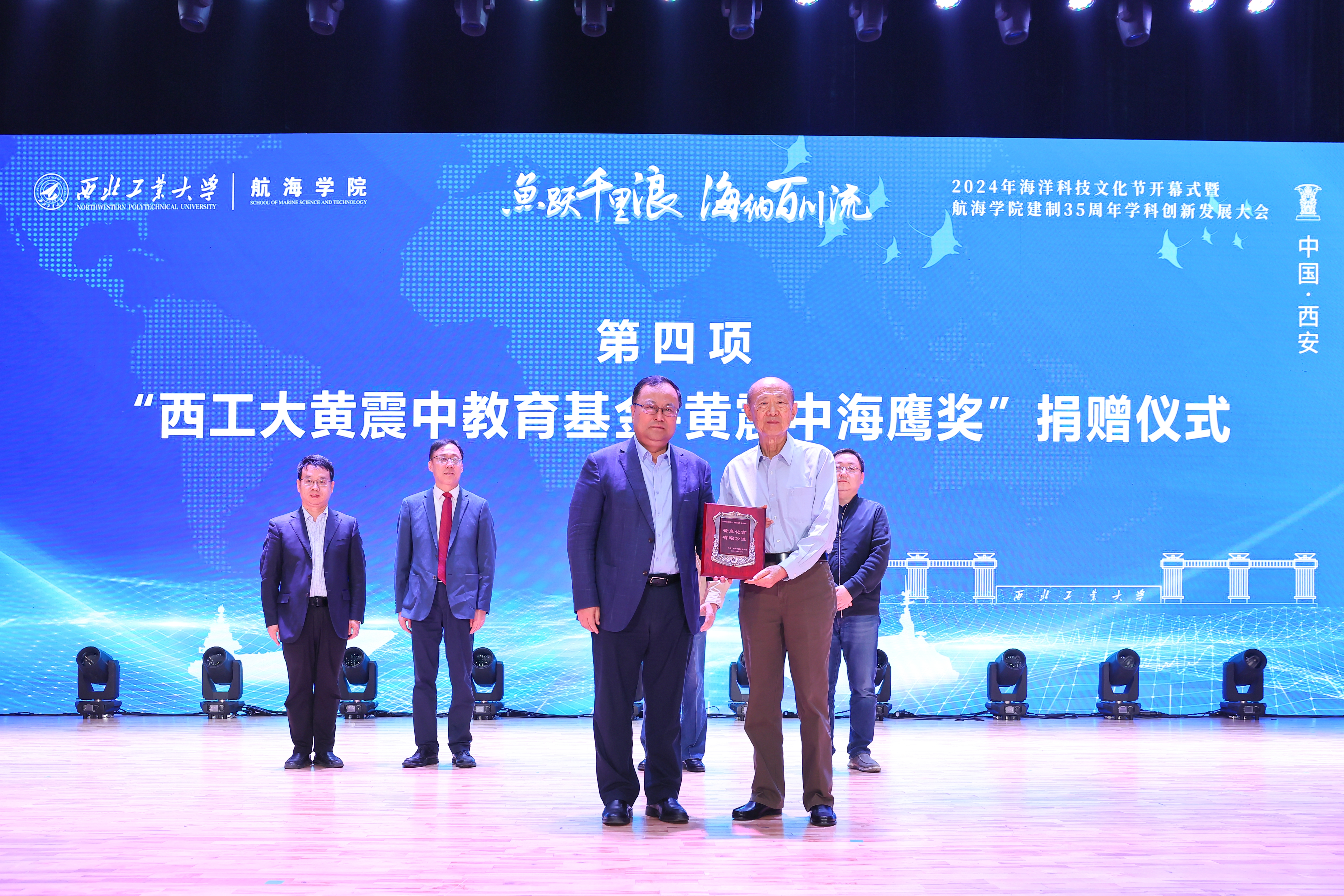开幕式上举行了“西北工业大学黄震中教育基金--黄震中海鹰奖”捐赠仪式。宋保维、潘光、学校对外联络办公室主任杨铭接受捐赠。