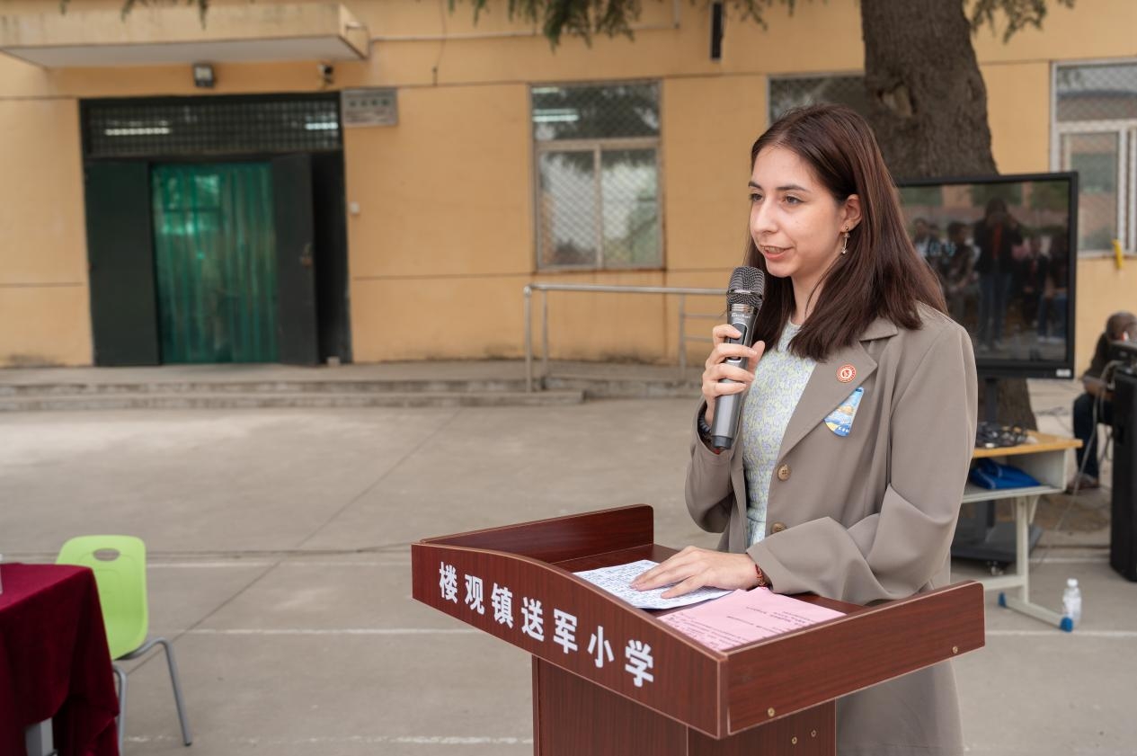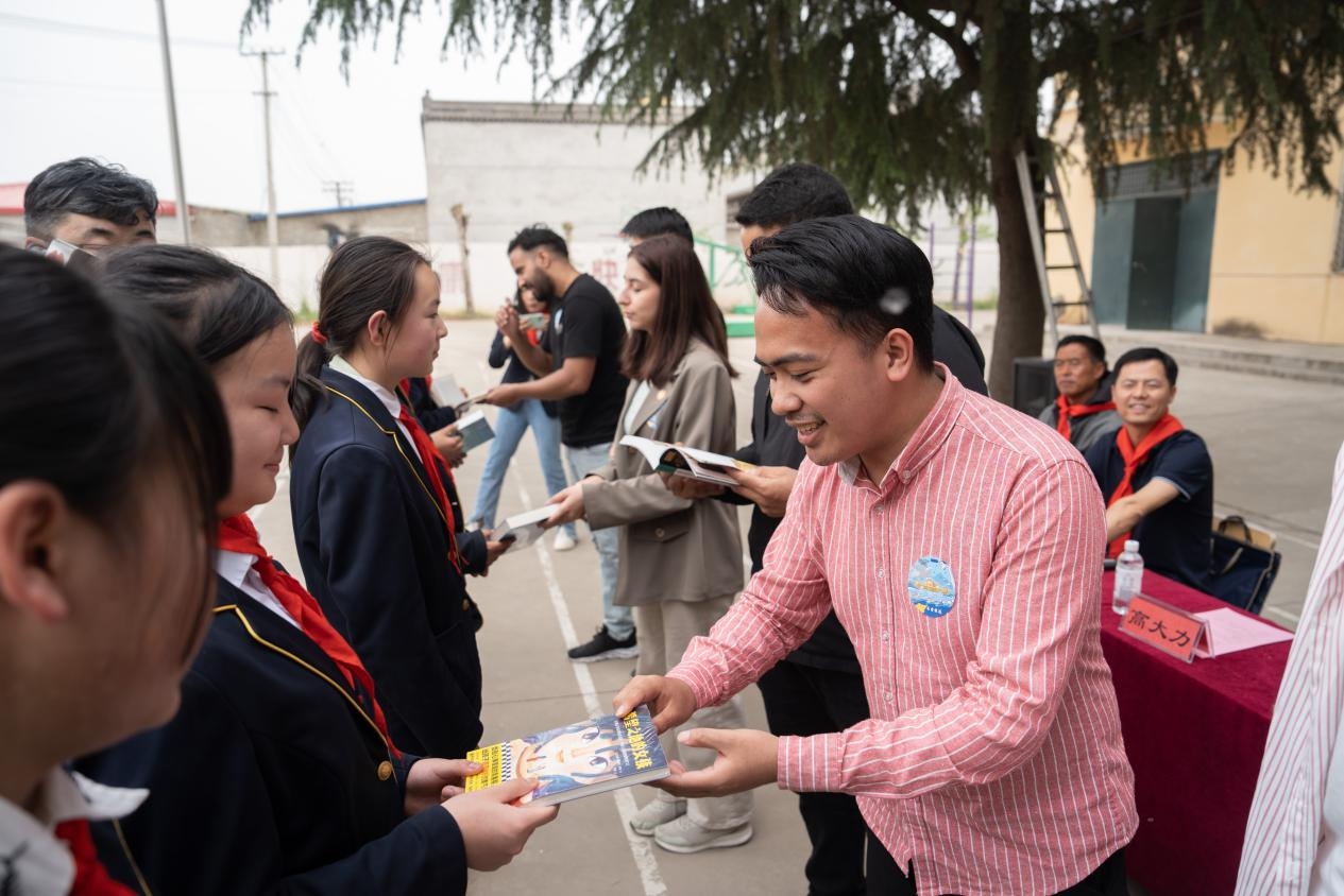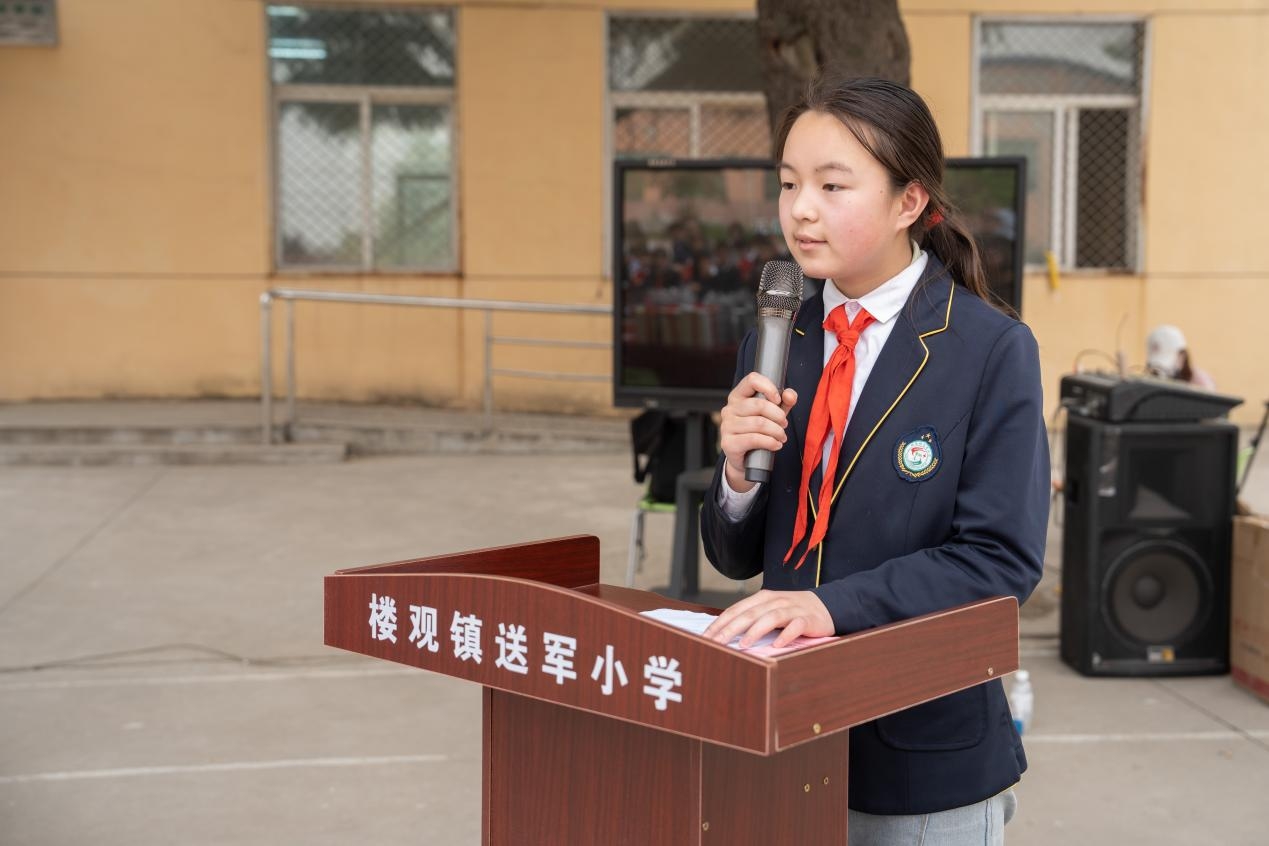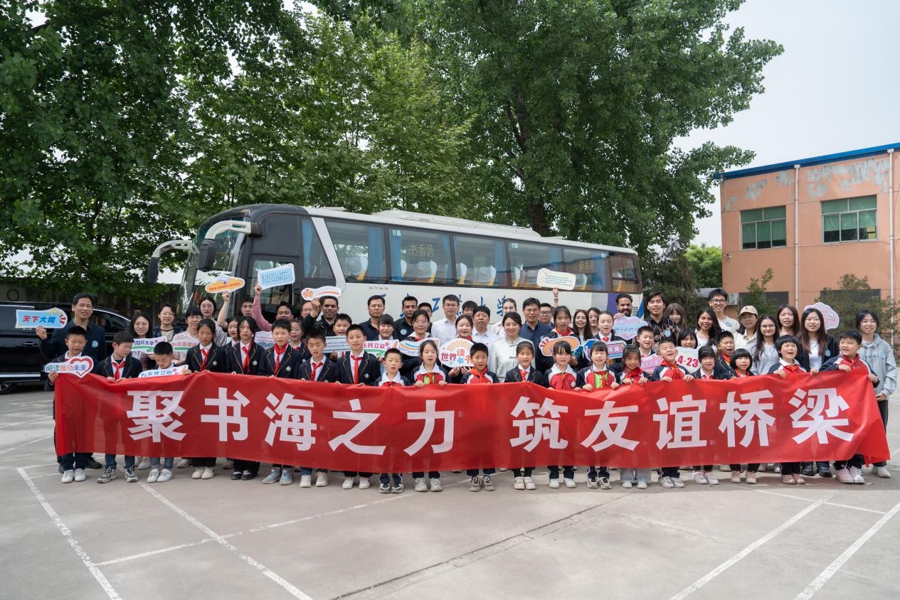 第二站,“书香号”驶向周至楼观镇送军小学。2023年第28个读书日,40余名送军小学学生乘坐“书香号”校车带着他们的飞天梦想来到了西北工业大学校园,在今天第29个读书日,“书香号”带着中外学生回到了他们身旁。