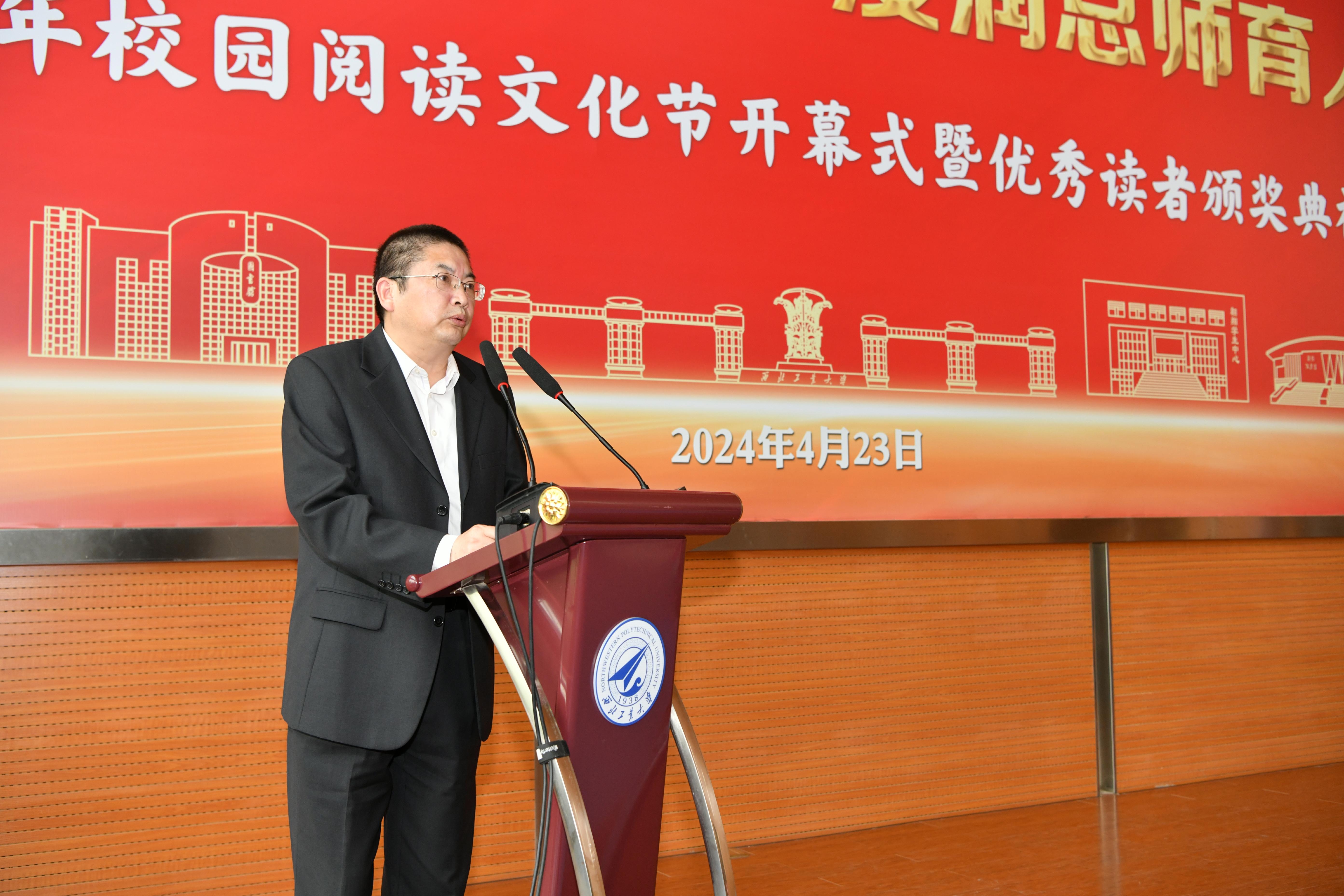 张卫红致开幕词。他指出,举办校园阅读文化节是我校贯彻落实习近平文化思想和党的二十大精神、深入推进全民阅读、弘扬学校“总师育人文化”、建设书香校园、促进学校高质量发展的重要举措。他希望大家坚持学思用贯通、知信行统一,锤炼本领、增长才干,努力成长为以“总师型”人才为代表的堪当民族复兴重任的时代新人。
