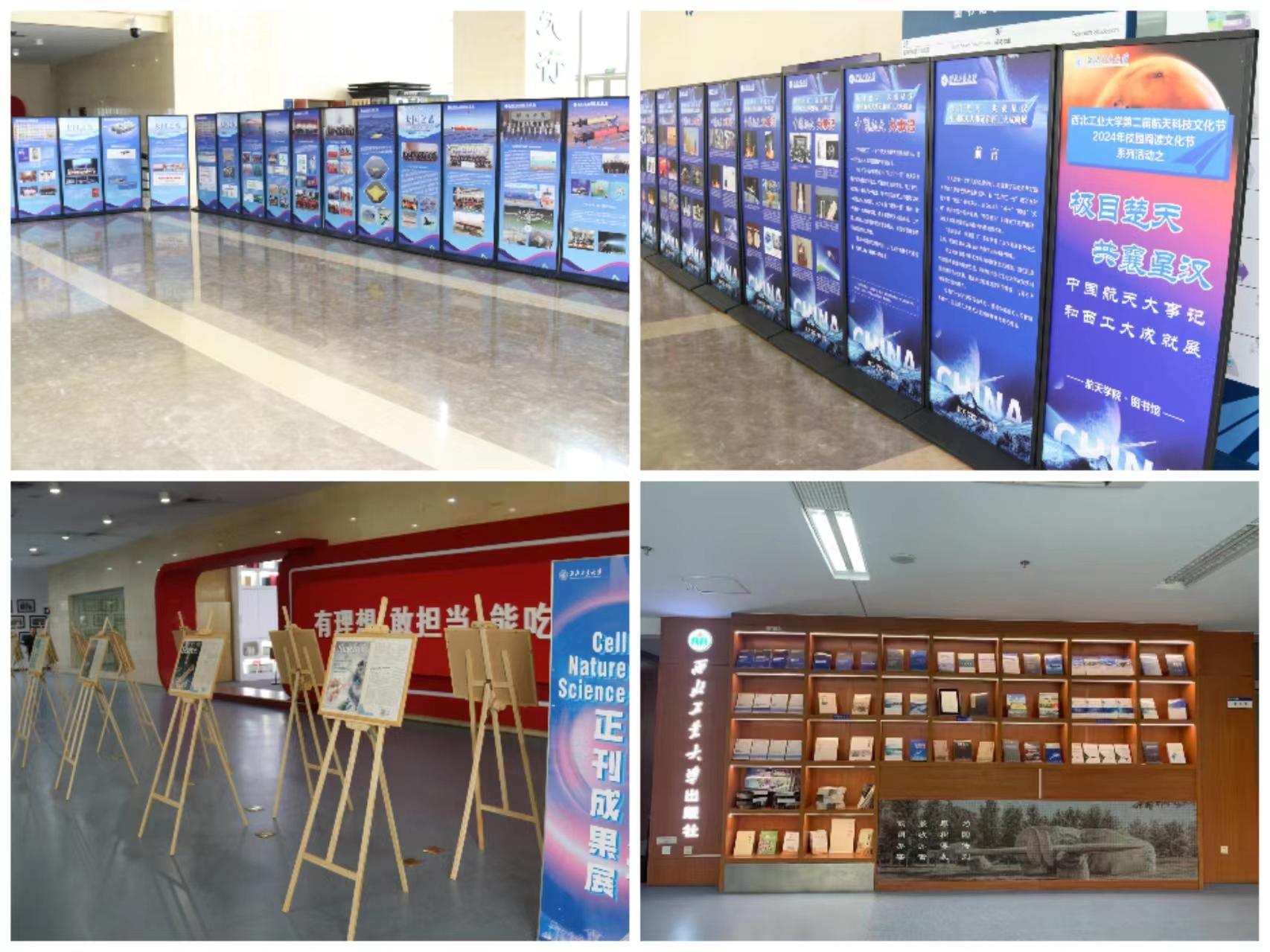 开幕式启动后,图书馆集中展示了近期建设的新资源、新空间以及各类特色展。其中,与航海学院合办了“大国之蓝”海洋科技文化主题巡展,与航天学院合办了“极目楚天 共襄星汉”中国航天大事记和西工大成就展,遴选并举办了西北工业大学CNS正刊成果展、西工大出版社“总师育人文化”及“三航”优秀图书入藏展。