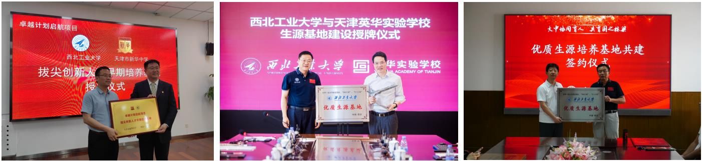 17日下午至18日,在杨益新的带领下,西北工业大学代表分别赴天津一中、新华中学、天津市第二十中学、天津英华中学、天津市经开区第一中学等五所重点中学与相关学校领导座谈交流,重点围绕进一步加强优秀生源基地建设达成一致意见,并举行了联合创新实验室揭牌仪式、优质生源基地授牌等仪式。