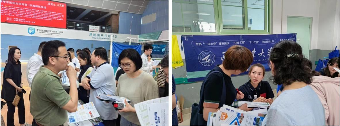18日全天,天津招生组分四队分别赴新华中学、二十中学、英华实验中学、经开区第一中学开展现场招生布展宣讲,进行现场咨询。四个场地约8000余名家长参与。