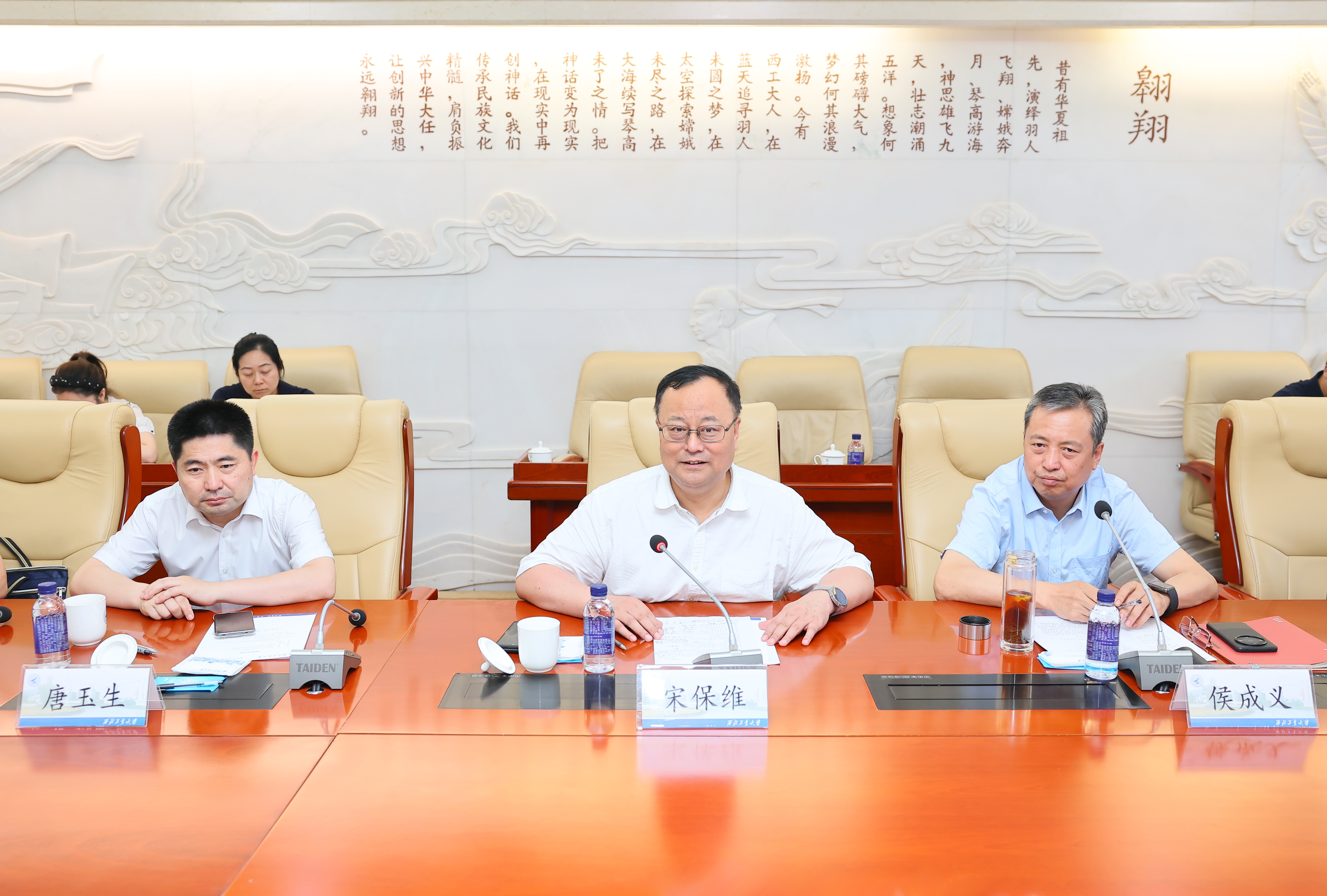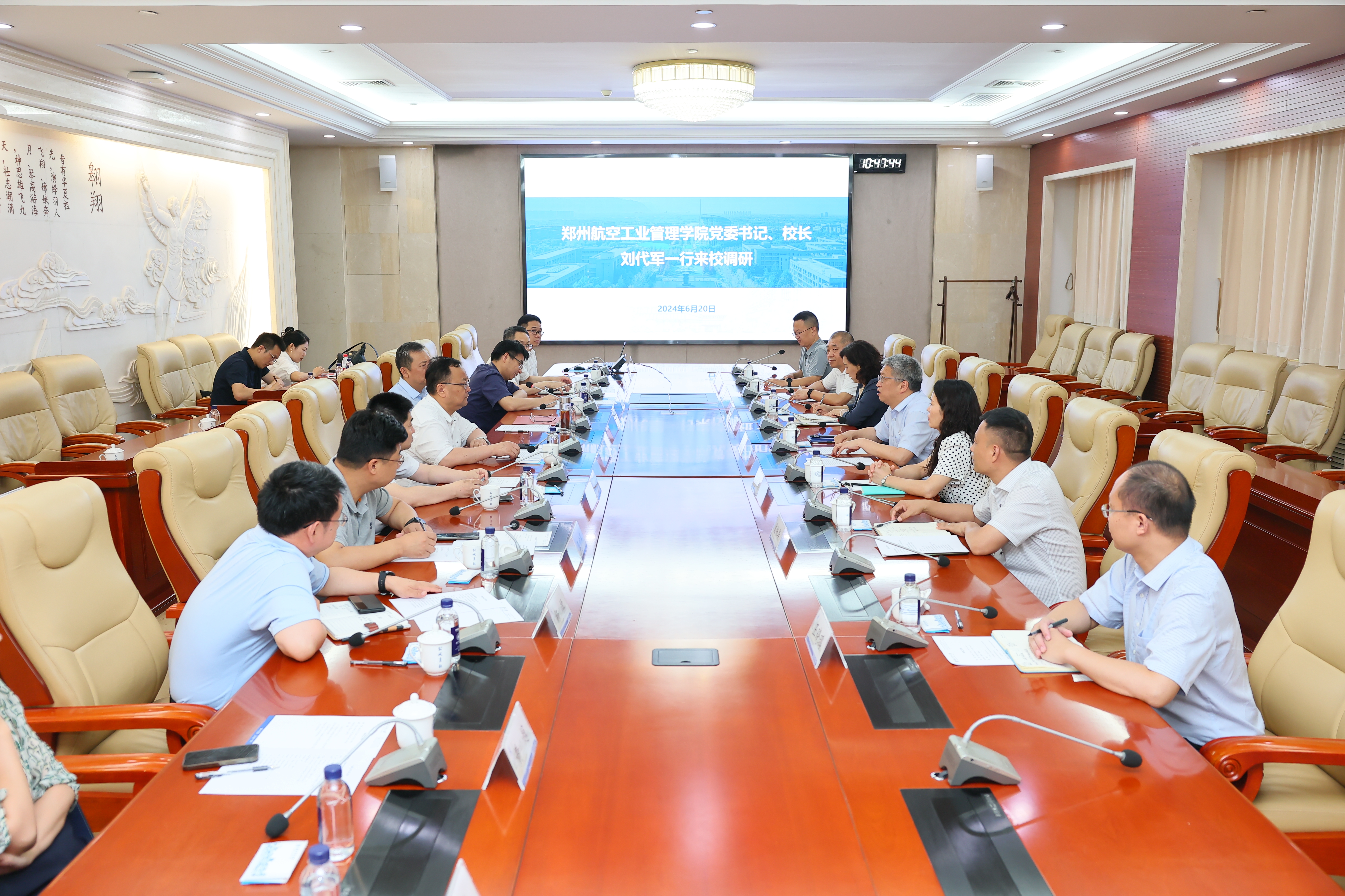 宋保维对刘代军一行来校调研表示欢迎。他指出,去年主题教育期间学校党委提出了“127”发展目标和落实举措,目前学校正聚焦“三航”特色和优势,推进深化机构与评价改革,推动学校高质量内涵式发展。郑航这些年在转型发展道路上取得了很多成绩,为我国航空航天事业和地方经济社会发展等领域培养了许多人才。两校友谊源远流长,在学科建设和科学研究等方面有很大的合作空间,希望双方能够发挥各自优势,相互帮助和支持,共同为国家航空航天事业发展作出新的更大贡献。