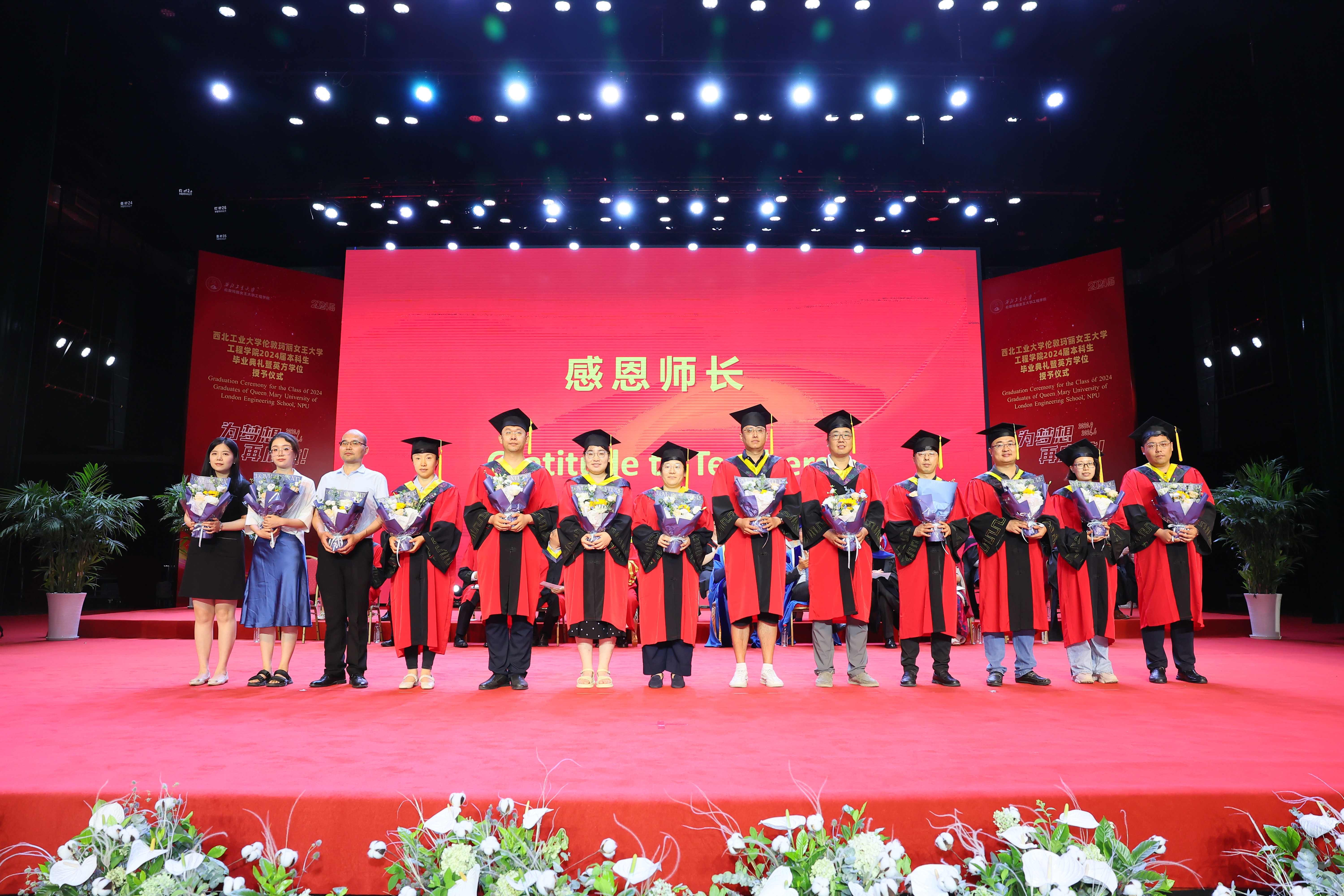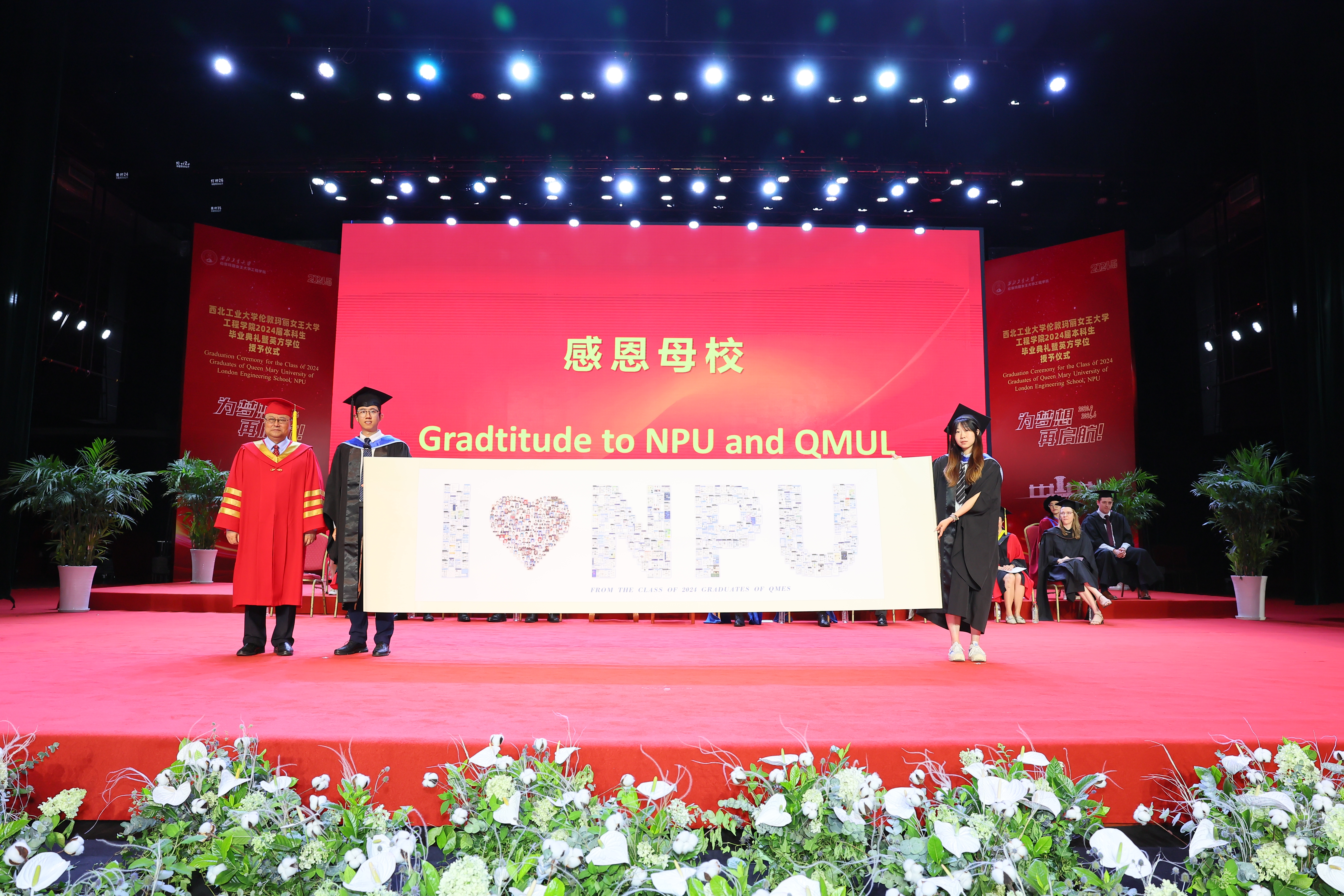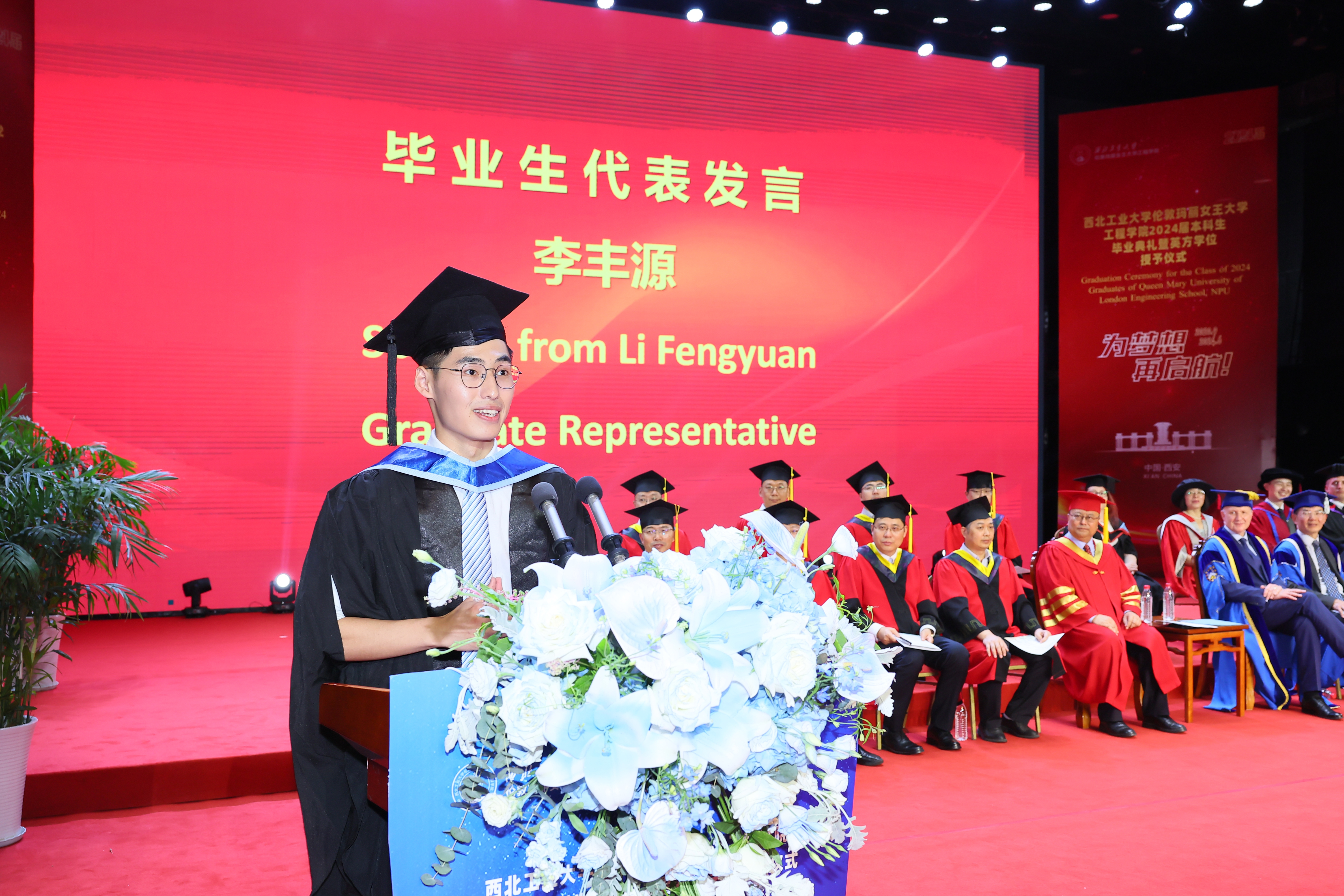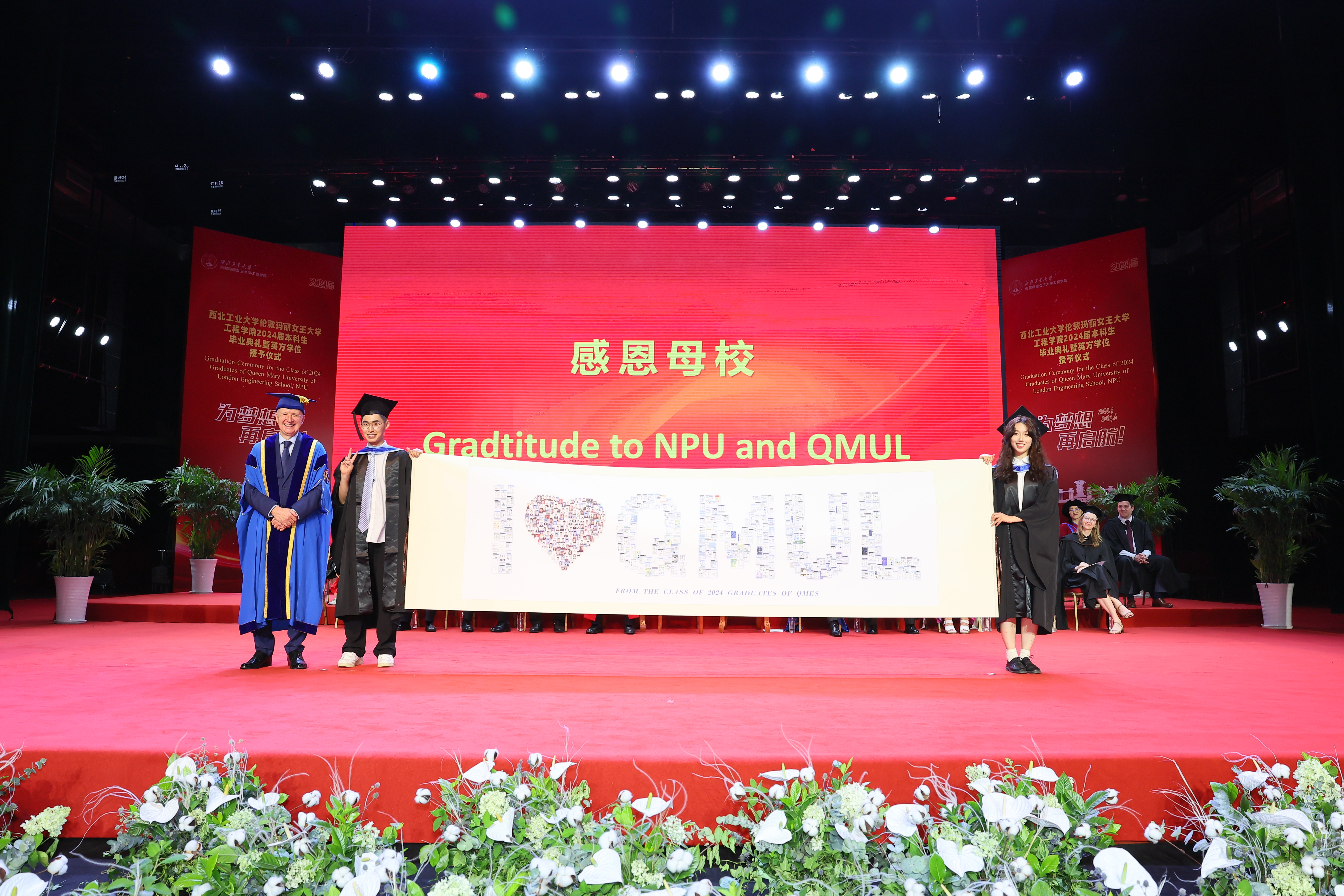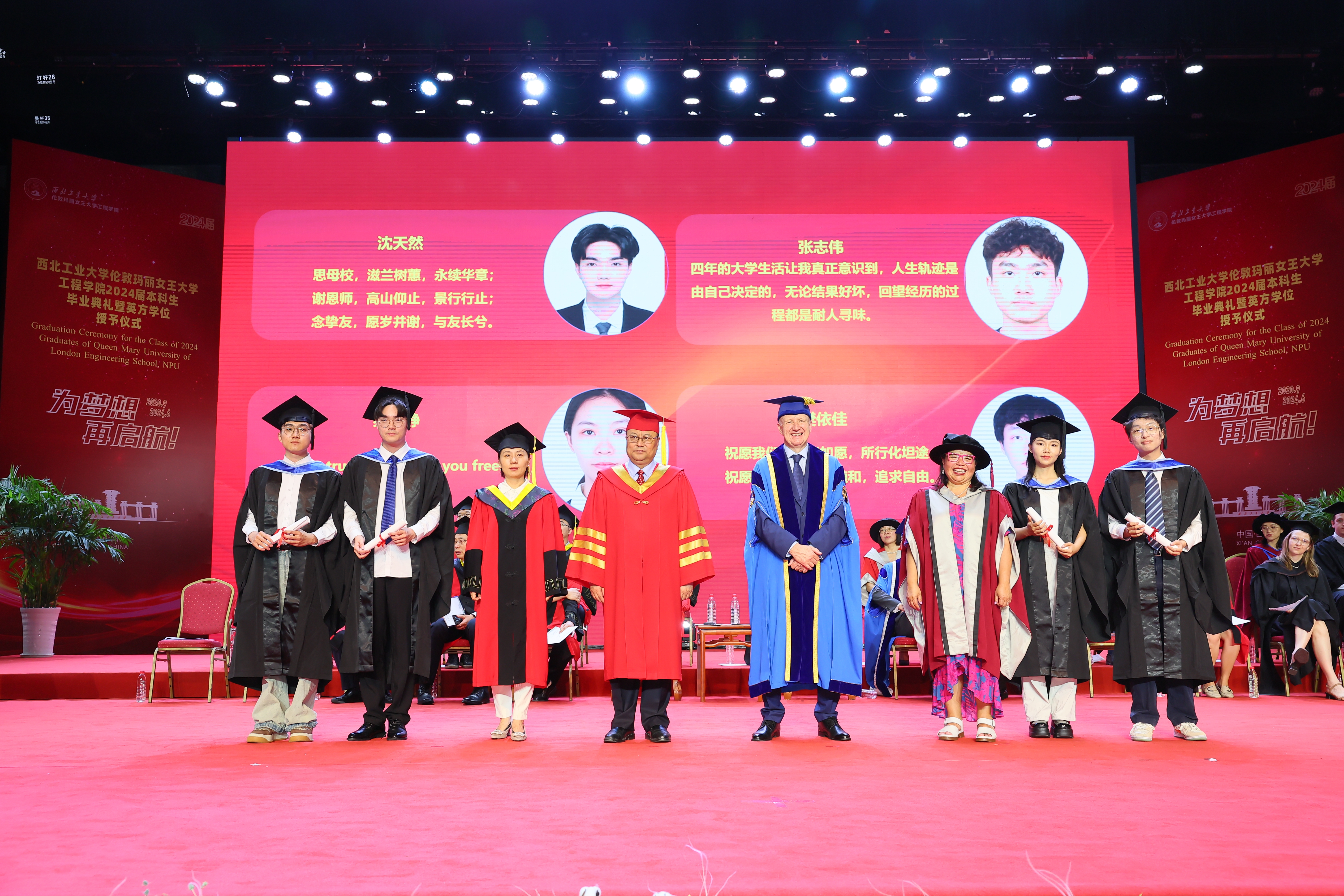 6 月 21 日,西北工业大学伦敦玛丽女王大学工程学院 2024 届本科生毕业典礼暨英方学位授予仪式在长安校区隆重举行。西北工业大学校长宋保维,伦敦玛丽女王大学校长 Colin Bailey 出席毕业典礼并致辞。我校副校长詹浩,伦敦玛丽女王大学副校长王文,两校相关单位负责人,学院 2024 届全体毕业生及亲友代表参加活动,共同见证这一重要时刻。典礼由玛丽女王工程学院院长范晓丽主持。