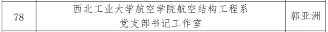 自2018年6月起,教育部思政司在全国高校中组织开展高校“双带头人”教师党支部书记工作室建设工作,每批培育创建100个,以3年为一个周期支持建设。近日,教育部公布了第三批全国高校“双带头人”教师党支部书记工作室建设名单,西北工业大学航空学院航空结构工程系党支部书记工作室成功入选。