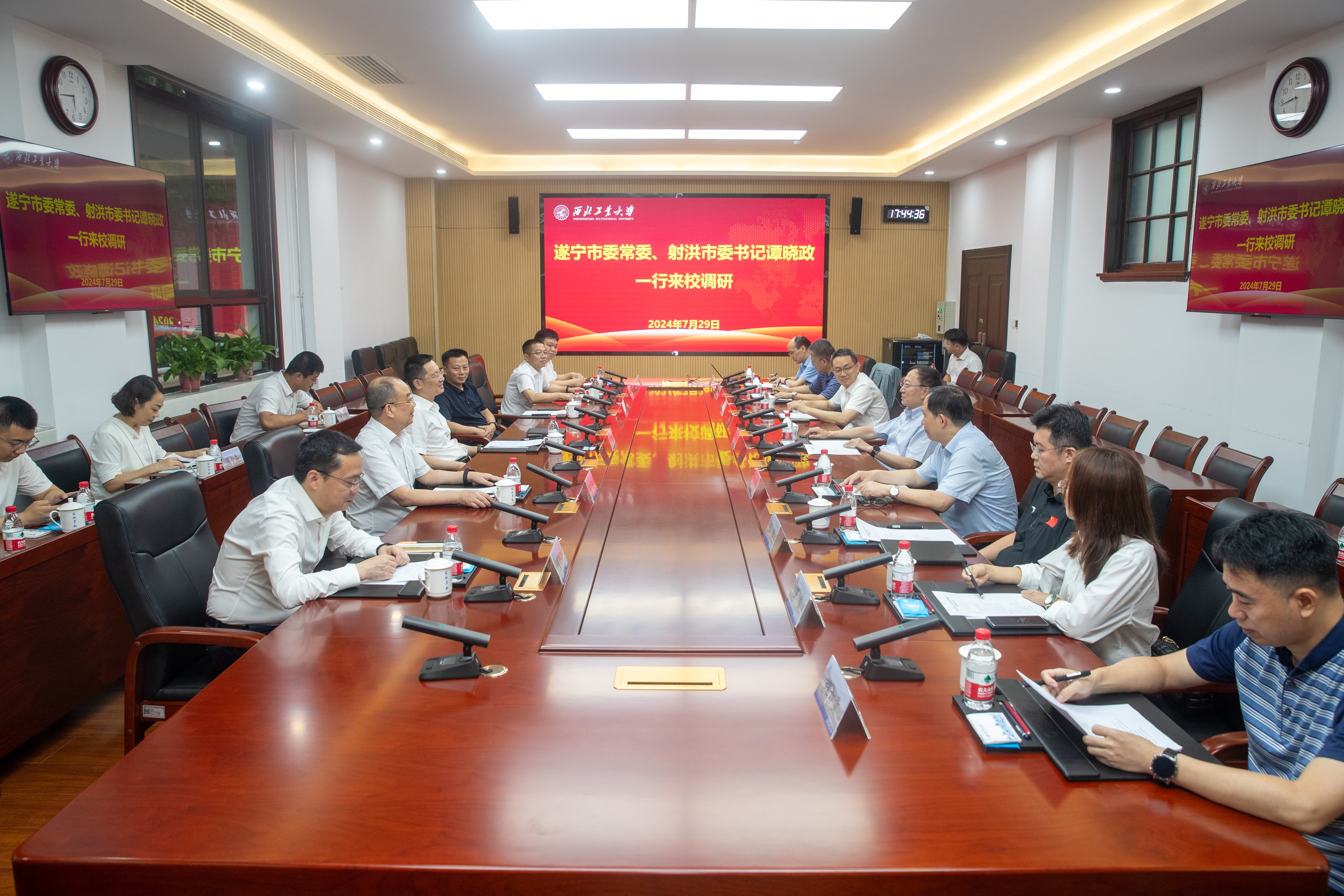 7月29日下午,四川省遂宁市委常委、射洪市委书记谭晓政一行来校调研。我校党委书记李言荣会见了谭晓政一行。副校长杨益新参加活动。