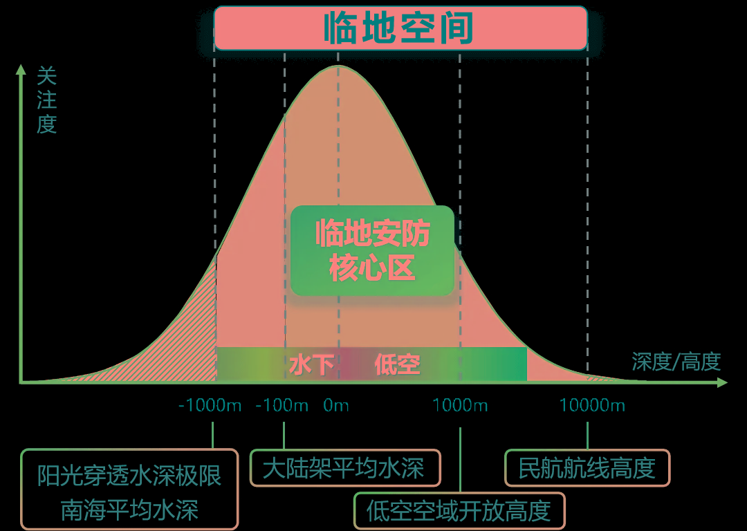 据悉,临地安防是指面向临地空间内防卫、防护、生产、安全、救援等需求的多元化、跨域化、立体化、协同化、智能化技术体系;具体应用场景包括低空安防、水下安防以及跨域安防等。与传统临近空间或近地空间不同,临地(Vicinagearth)空间是指从海平面以下1000米(阳光穿透水深极限,南海平均水深)到海平面以上10000米(民航航线高度)的水域、地面及空域。其中,海平面以下100米(大陆架平均水深)到地面以上1000米(低空空域开放高度)是其核心区,基本覆盖人类主要生产生活空间,以及低空、超低空及水下作业空间。临地安防不仅涵盖临地空间内的区域安全监测与保护,而且覆盖了工业生产、社会经济、科研教育等方面的防护、生产、安全、救援,对地域安全、社会稳定、经济发展均具有重要意义。