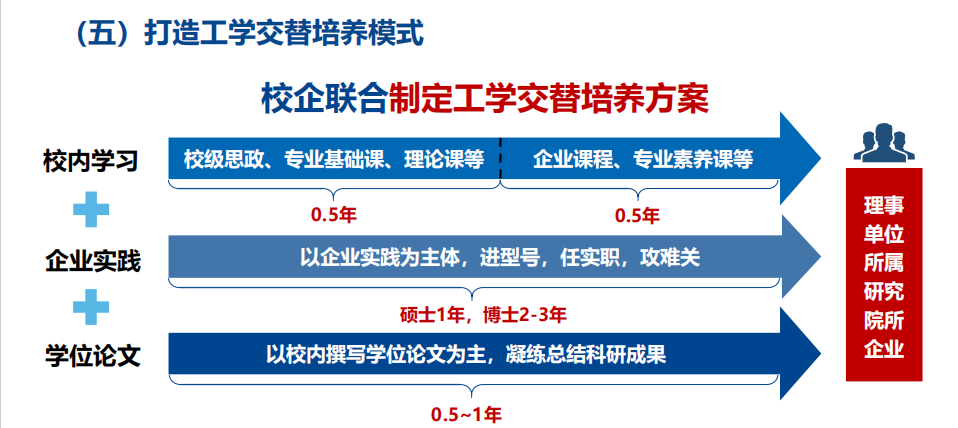 学院深入推进工程硕博士人才培养改革,提升卓越工程师培养质量,实行“一校对多企”协同培养,积极对接联培单位,联合设计培养目标、制定培养方案、实施培养过程,充分发挥企业在卓越工程师培养中的“出题者”“监考官”“阅卷人”作用,也充分营造国防军工企业“红色文化”育人生态。
