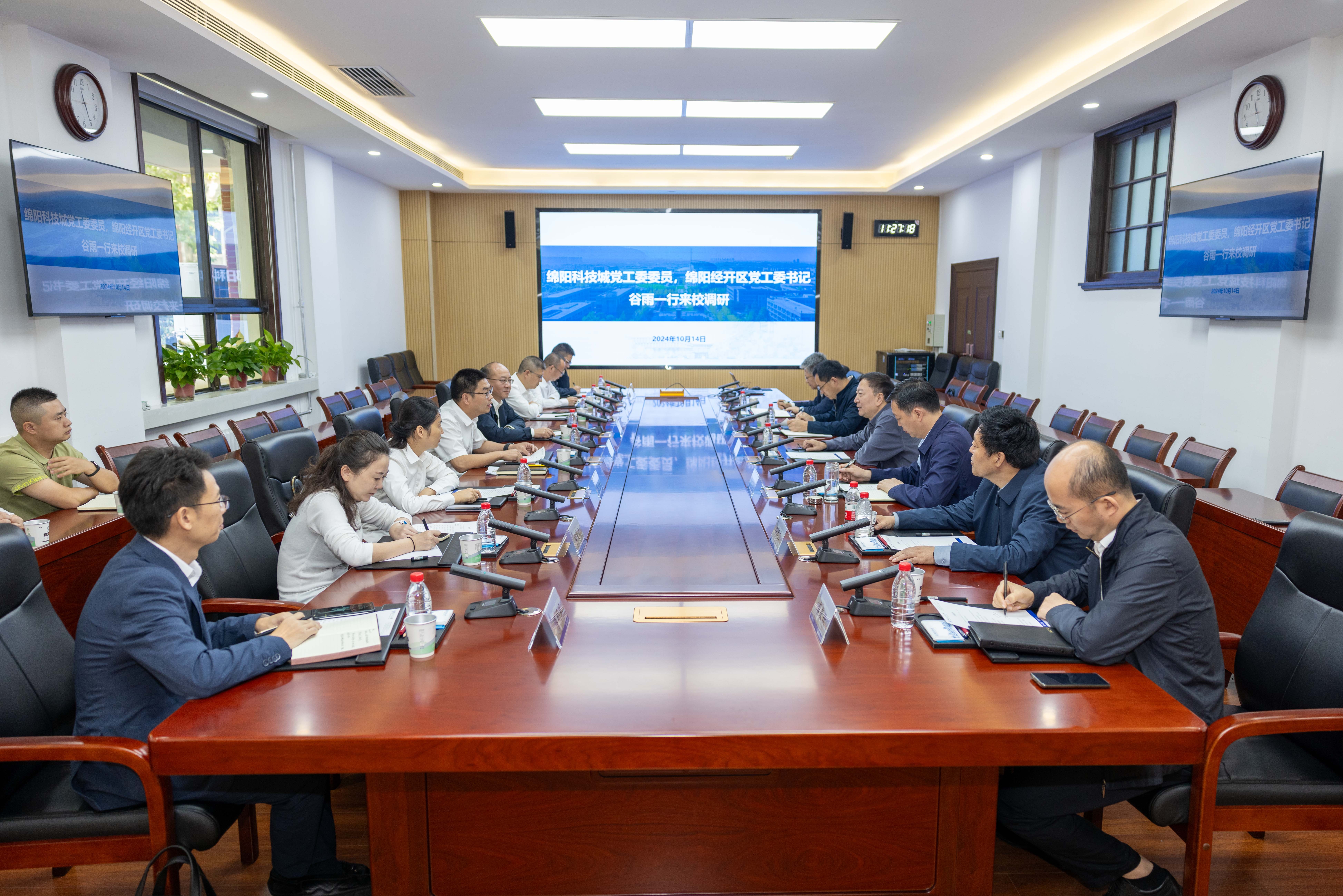 10月14日上午,绵阳科技城党工委委员、绵阳经开区党工委书记谷雨,区党工委副书记、管委会副主任谢文伟一行来校调研。我校党委书记李言荣会见谷雨一行。副校长张开富参加会见。