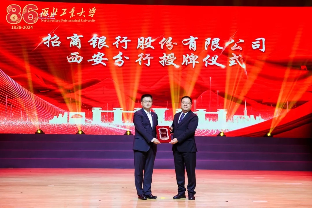 大方集团(西安)控股集团董事长、校友王方胜,捐资支持西工大击剑队,并设立“大方击剑训练基地”。比亚迪慈善基金会向学校捐赠,设立比亚迪奖学金和奖教金。招商银行股份有限公司西安分行向学校捐赠,支持学校高质量发展。领导嘉宾依次登台揭牌授牌,现场观众以热烈掌声感谢慷慨助力学校发展。