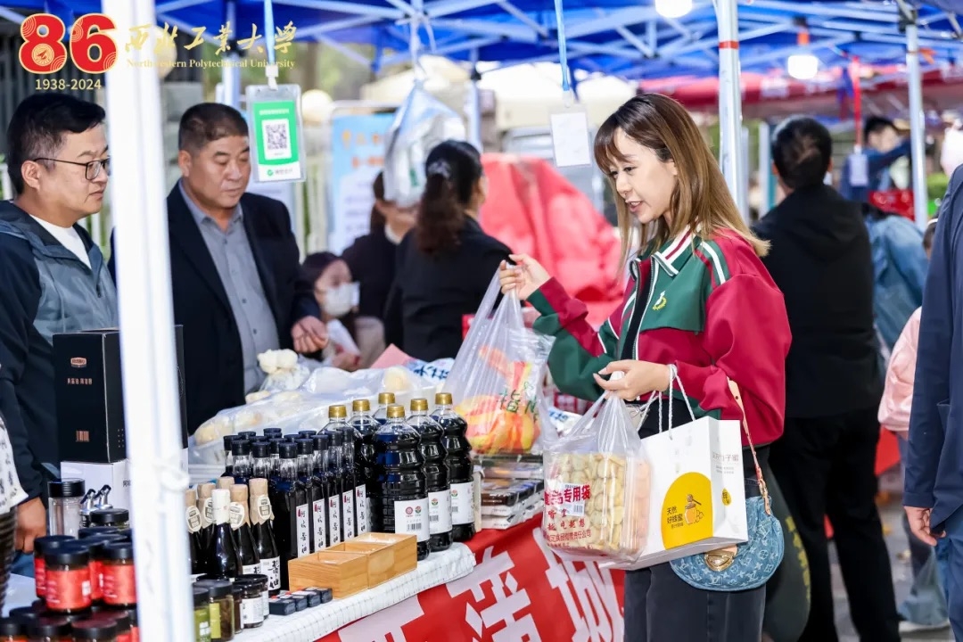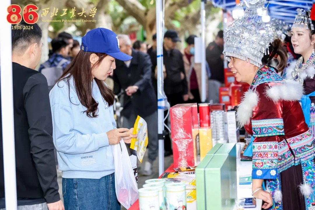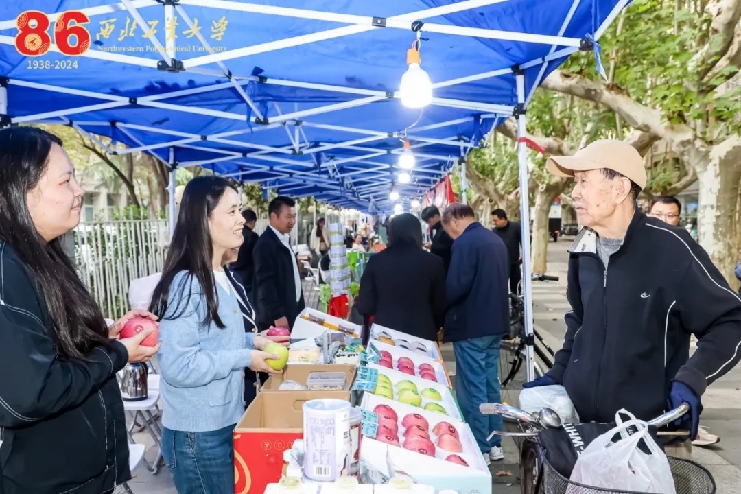 10月17—20日,学校还在友谊校区三航路举办2024年秋季农产品校园展销活动,本次活动是学校贯彻落实国家乡村振兴战略相关部署的实际行动。活动现场,汇集了几十种我校帮扶地区的优质特色农产品,从来自千里之外的广西融水的红薯粉、大苗山古树红茶、灵芝片、甘草金桔,到陕西镇巴县的牛肉干、腊肉、树花菜、羊肚菌,再到蒲城县的脆皮油糕、杂粮礼盒、烤兔、金粟山椒麻鸡,还有城固县的土蜂蜜、茶叶、白水县的苹果等集中展销。活动现场热闹非凡,琳琅满目的农产品吸引了众多师生、校友和家属的目光,大家购买到“绿色、健康、美味”的农产品同时,也为乡村振兴贡献了一份力量!